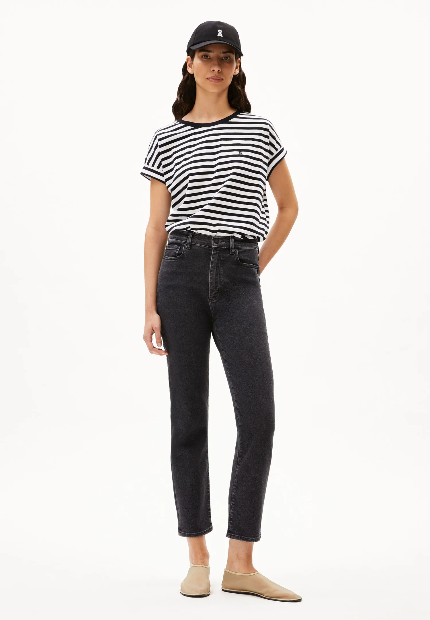 Produktinformationen "Armedangels IDAARA GESTREIFTES T-SHIRT 100% Bio-Baumwolle in white / black"
