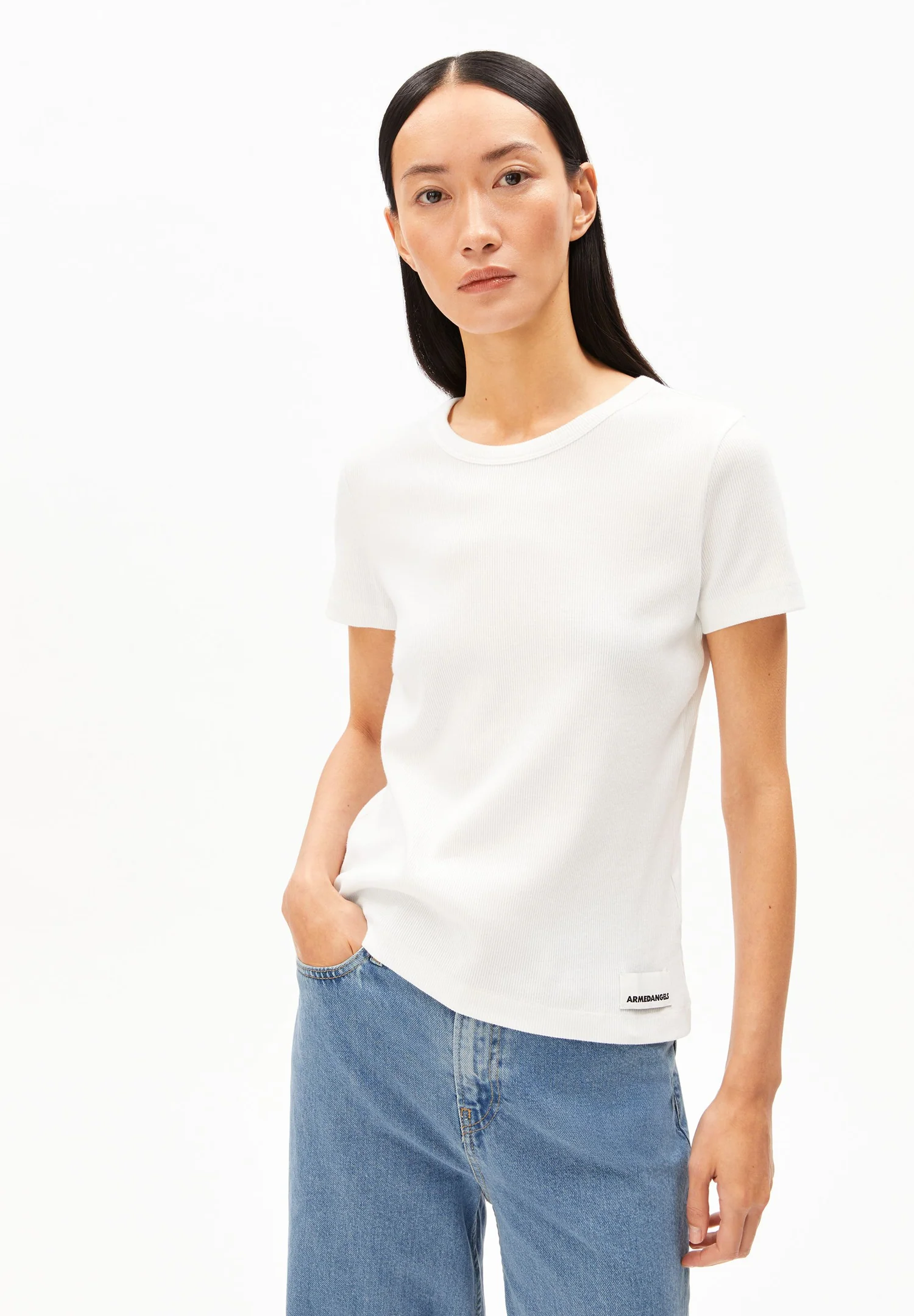 Armedangels KARDAA Ripp T-Shirt Regular Fit aus Bio-Baumwoll Mix in weiß
