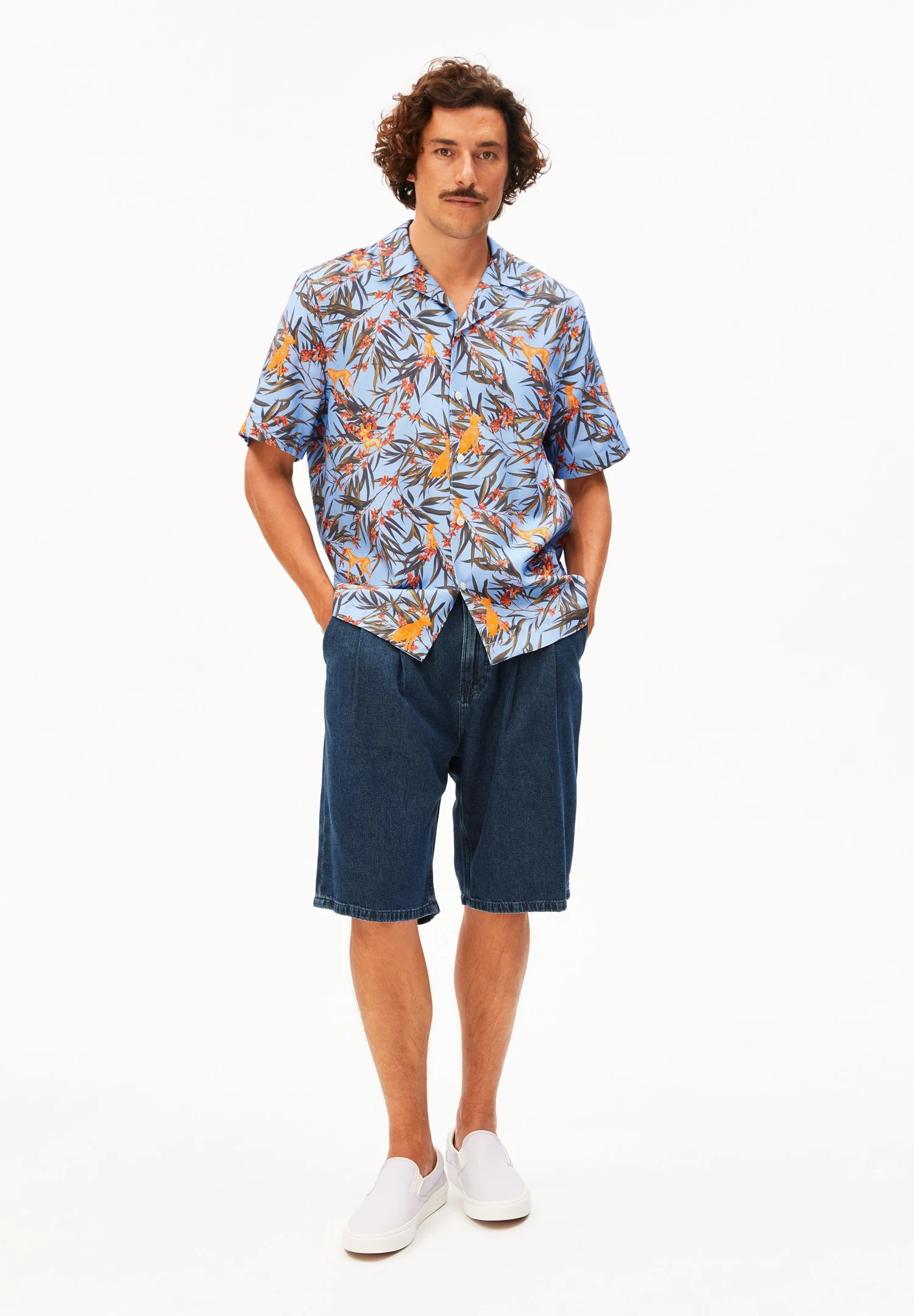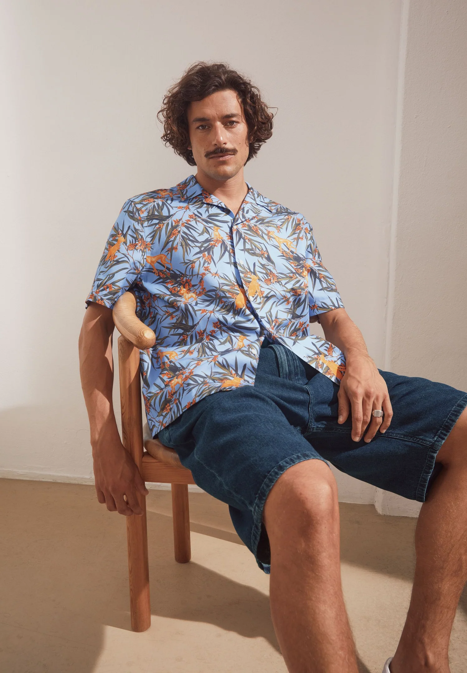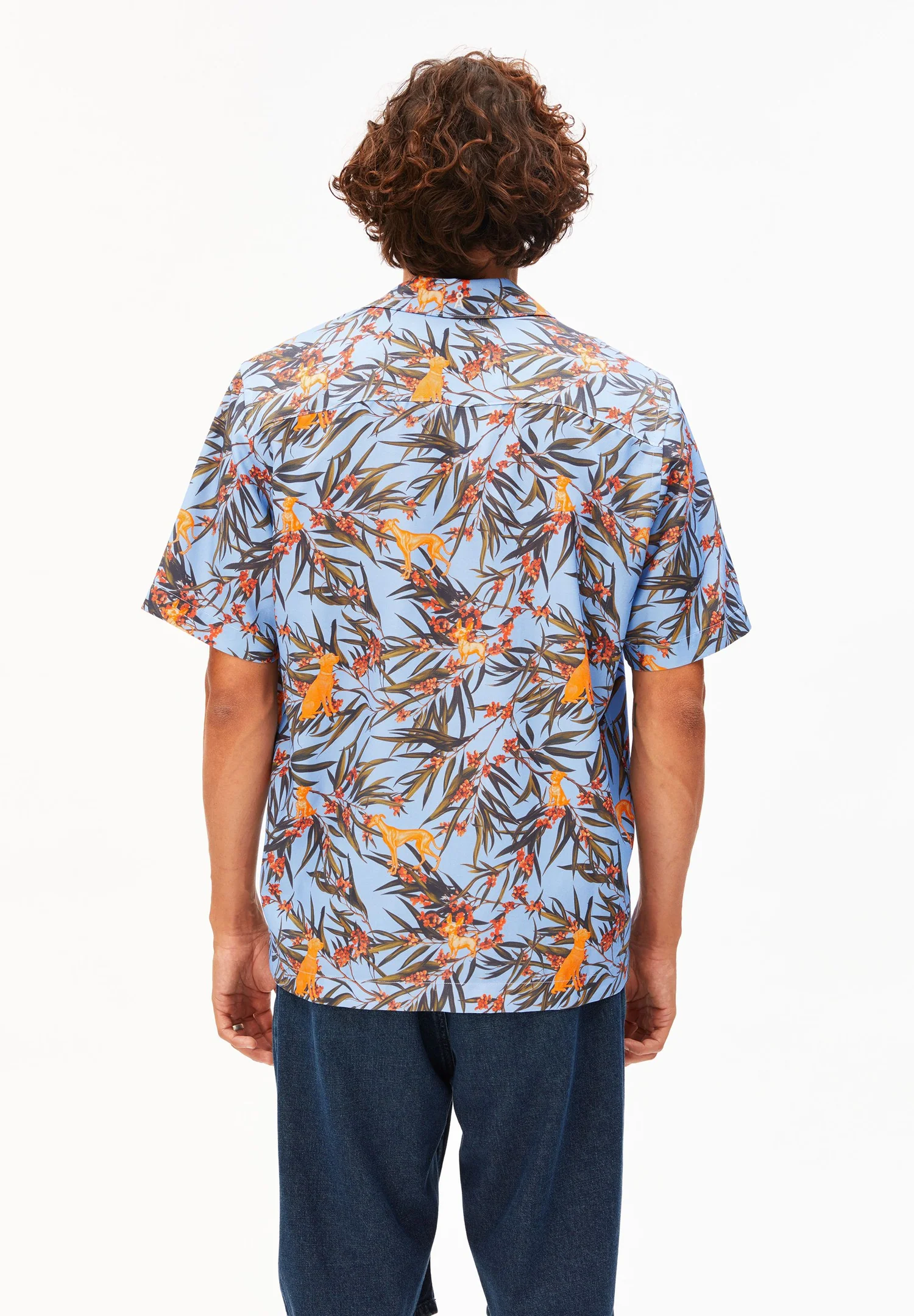 Armedangels KURZÄRMLIGES HEMD HUNDEMOTIV TENCEL™ Lyocell-Mix in wedgwood