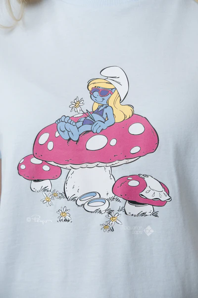 Produktinformationen " Bavarian Caps Damen T-Shirt Die Schlümpfe Schlumpfines Schwammerlsofa - eisblau"