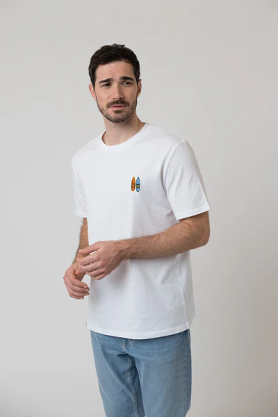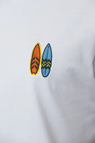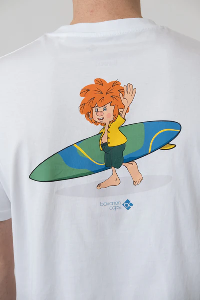 Produktinformationen "Bavarian Caps - HT103-1 T-Shirt "Pumuckl surft" - weiß"