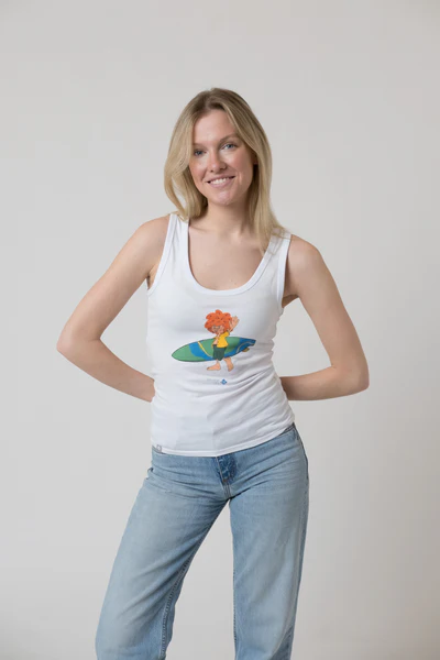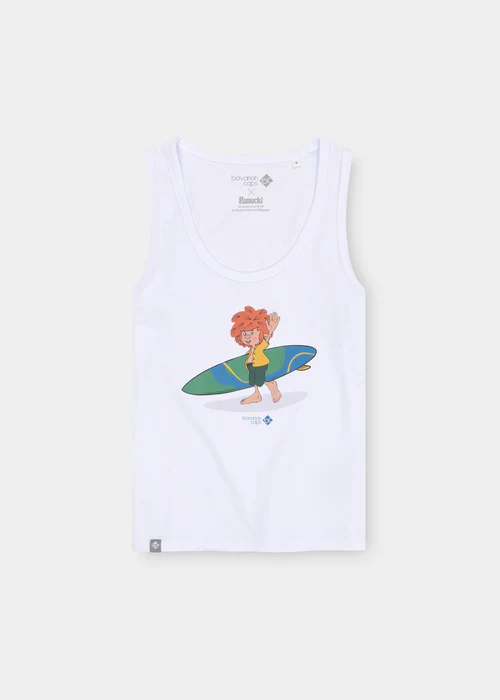 Das Tanktop „Pumuckl surft“ ist frech, wild und voller Schabernack! Wie unser kleiner Pumuckl. Mit dem surfenden Pumuckl bringt es richtig gute Laune und verleiht einen klabautischen Kobold-Charme.