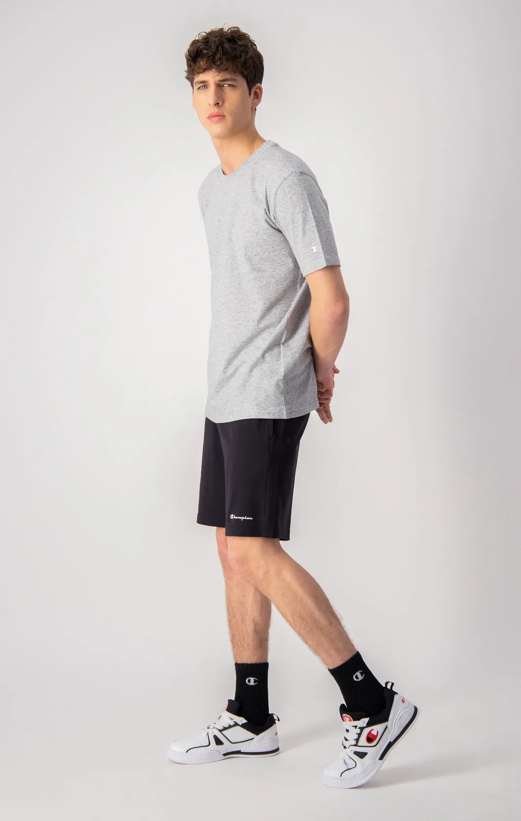 Champion Baumwoll Shorts mit Tasche und kleinem Logo-Schriftzug