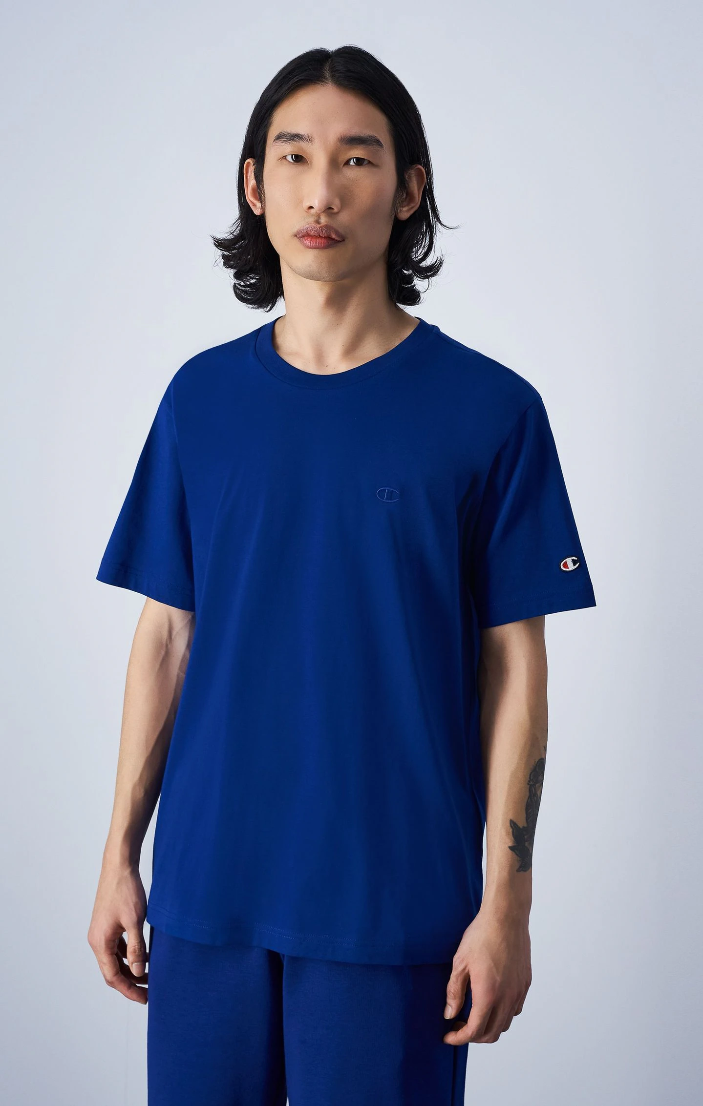 Champion Komfort-T-Shirt mit tonalem C-Logo in blau