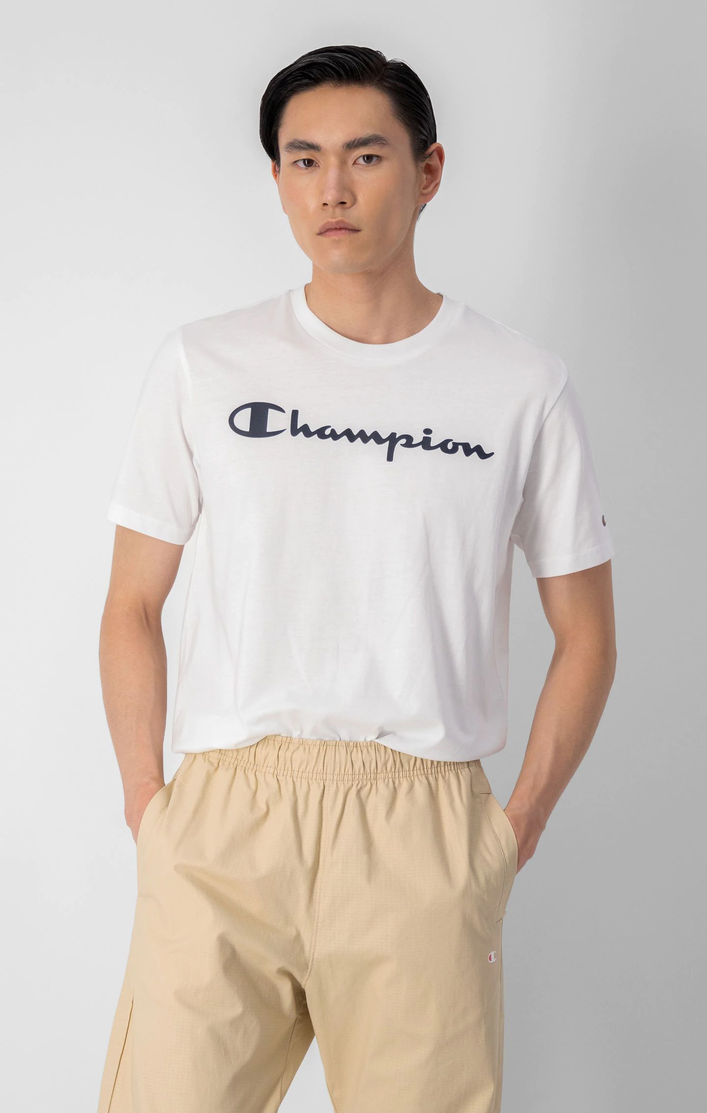 Champion Legacy Rundhals-T-Shirt aus Baumwolle mit Logo-Schriftzug in weiß