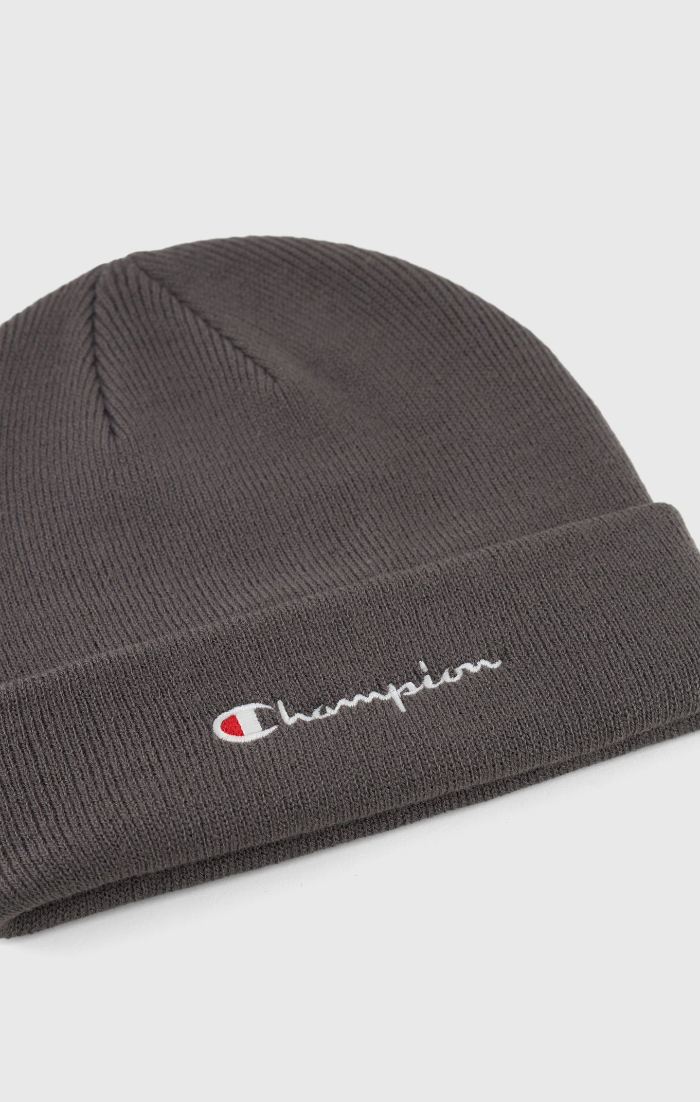 Champion Strick-Beanie mit Logo-Schriftzug / Unisex Mütze in dunkelgrau