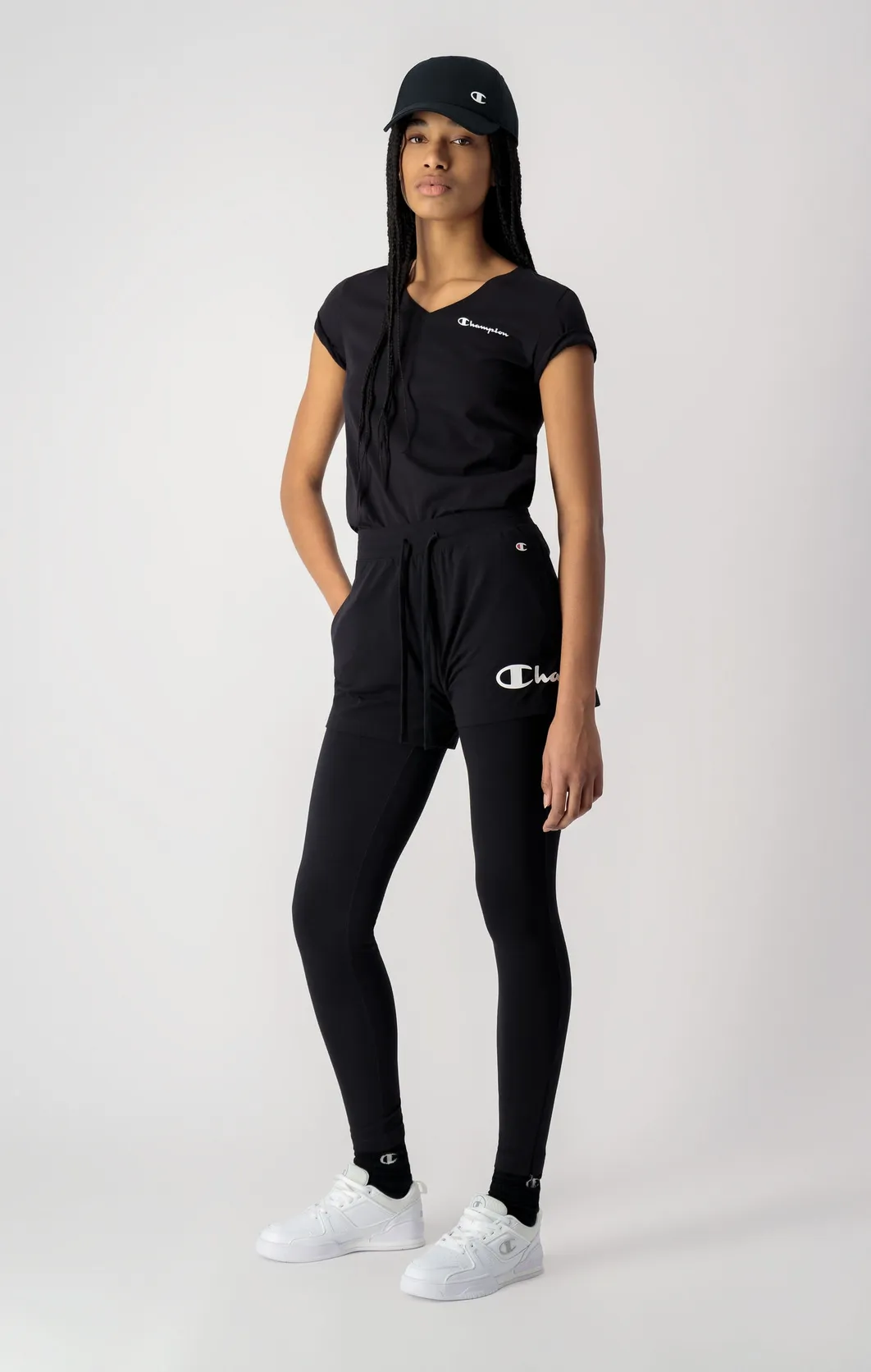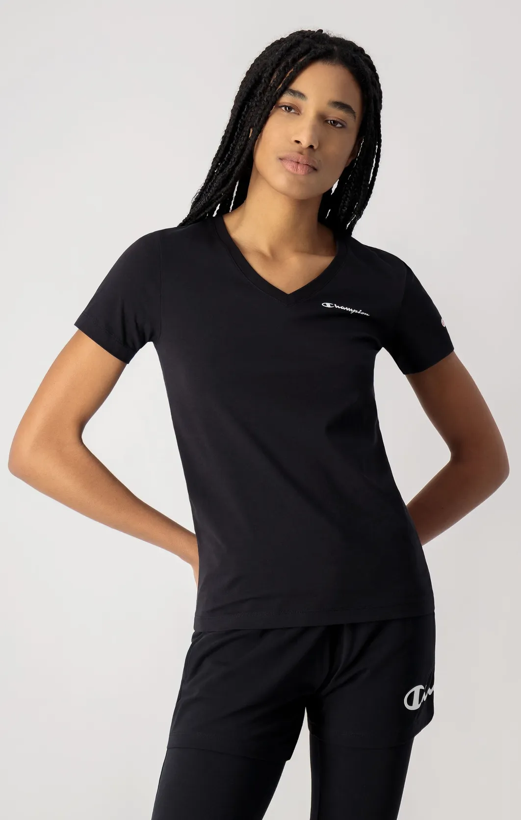 Champion T-Shirt mit V-Ausschnitt und C-Logo in schwarz