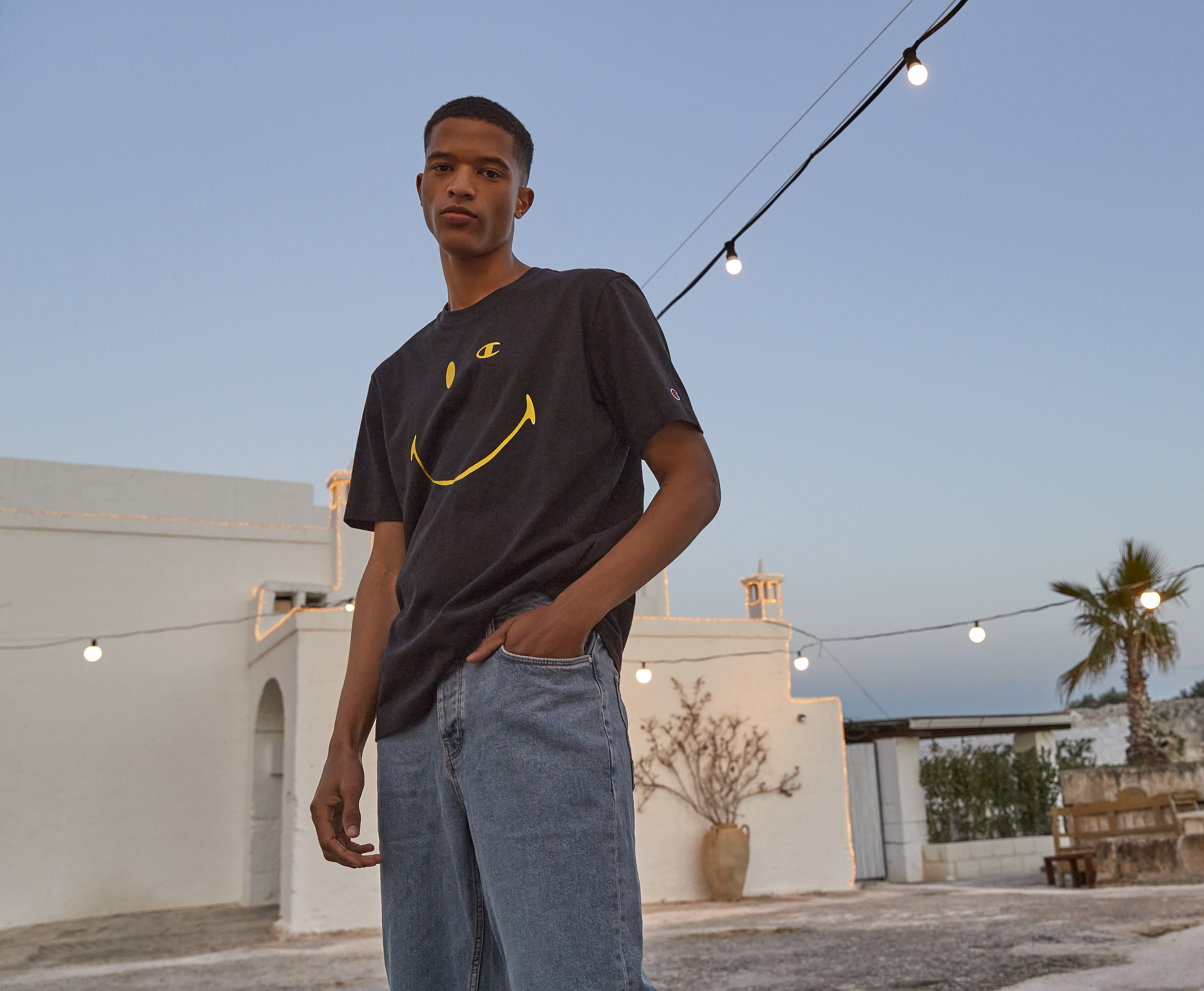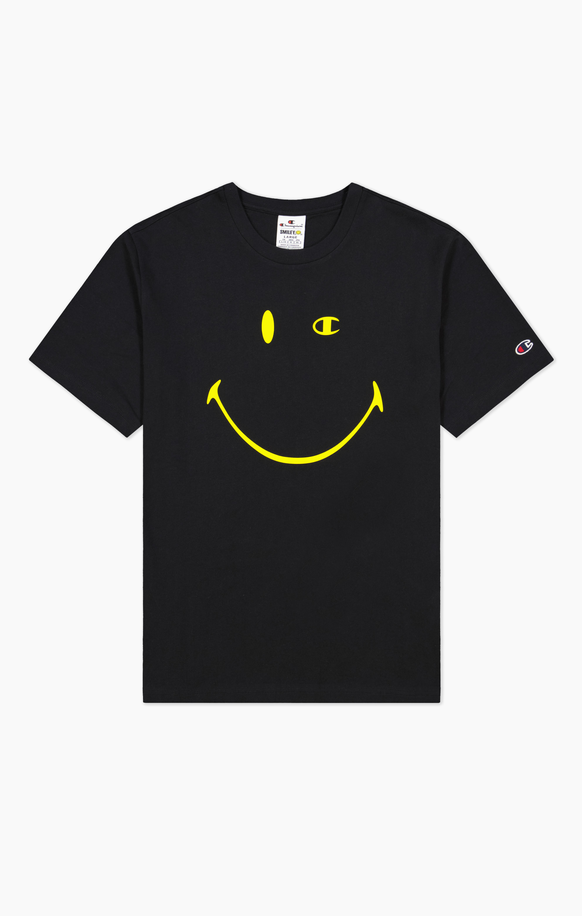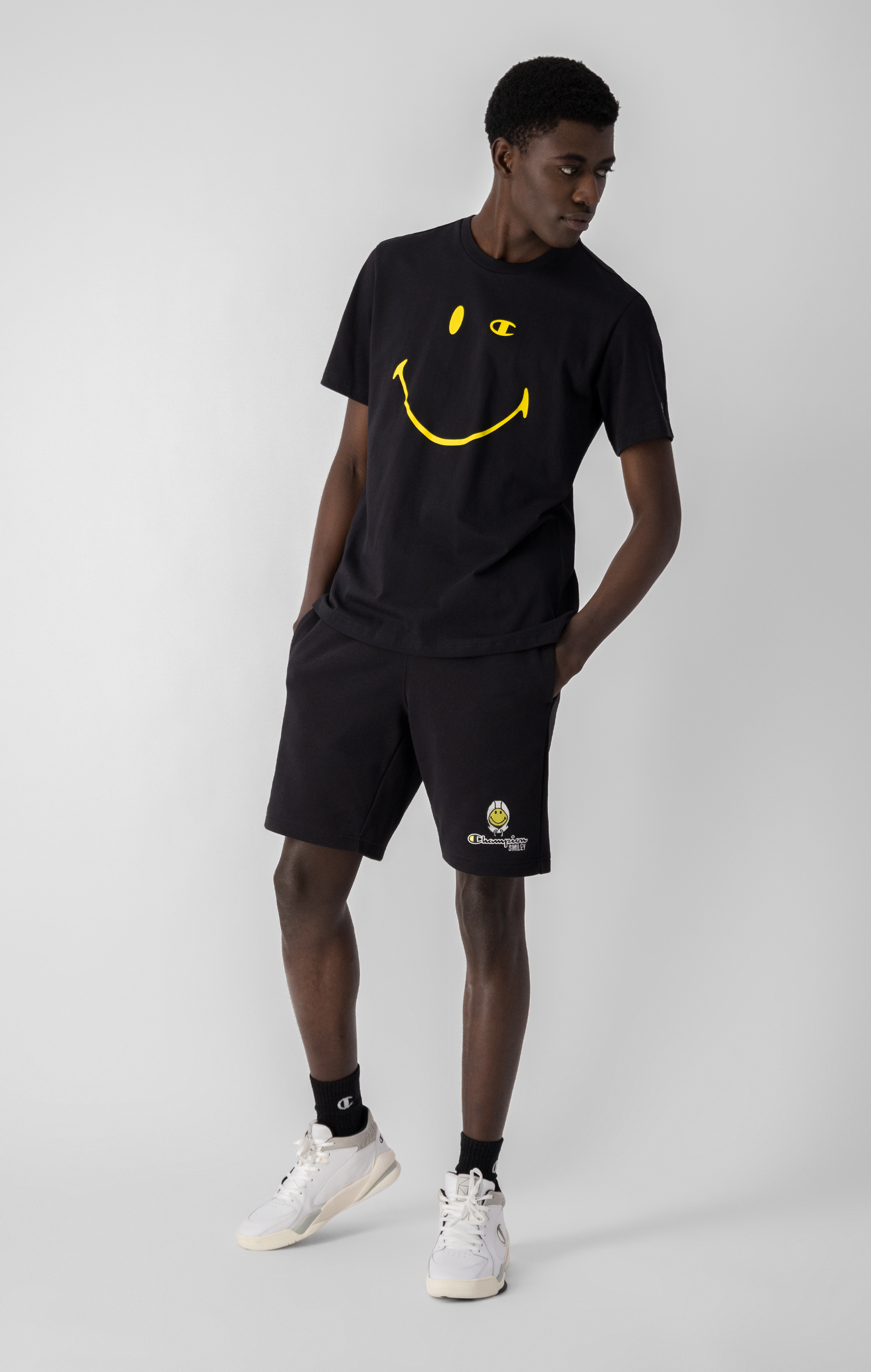 Champion x Smiley Allover T-Shirt in schwarz zum 50 Geburtstag von Smiley 1972-2022