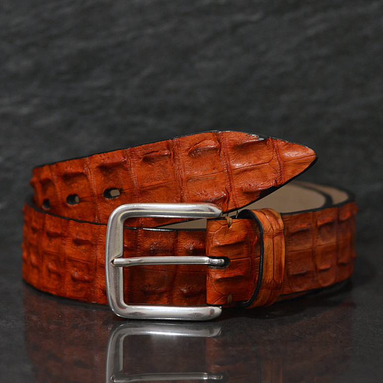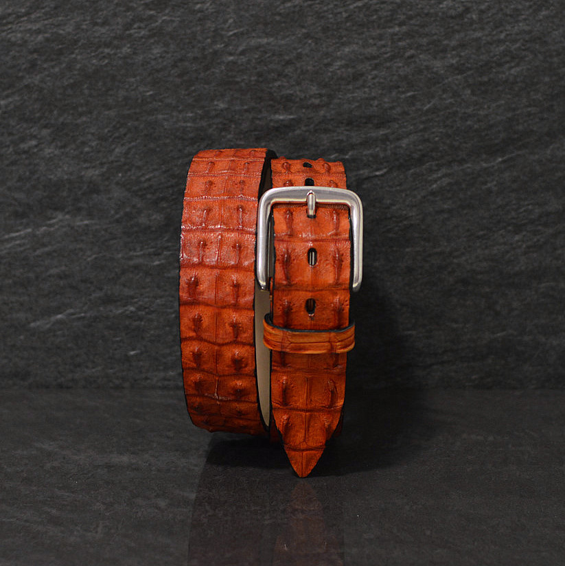Fausto Colato Krokodilleder Gürtel Breite 4,0 cm orange Crocodile Hornback