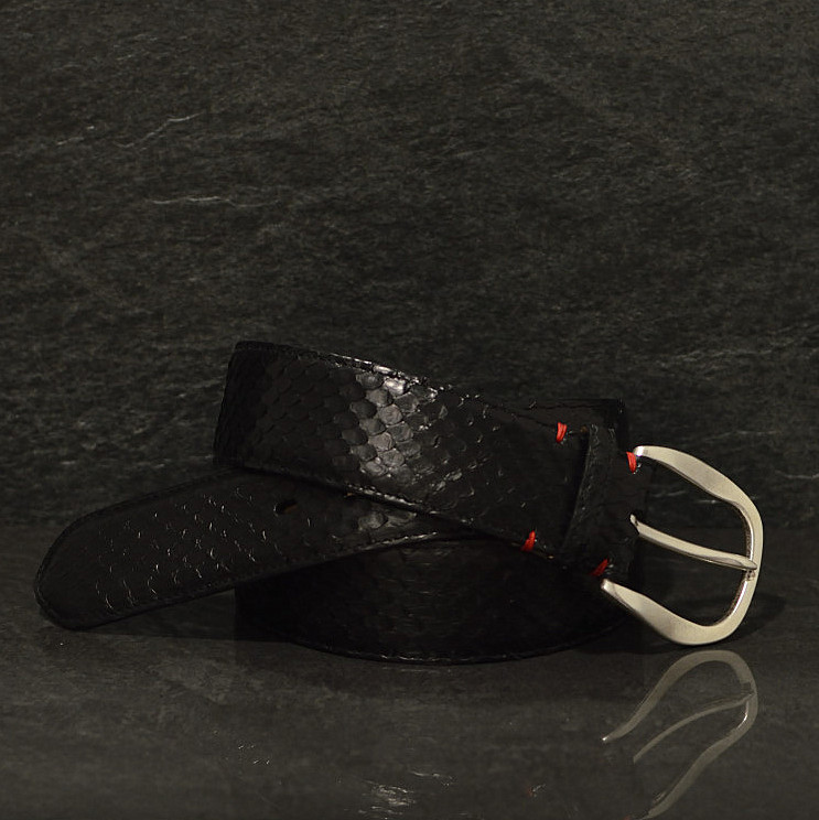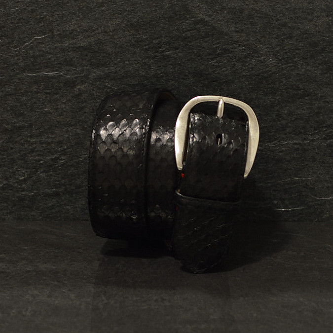 Ein Anakondagürtel ist durch seine größeren Schuppen die gröbere Alternative zum Pythongürtel.