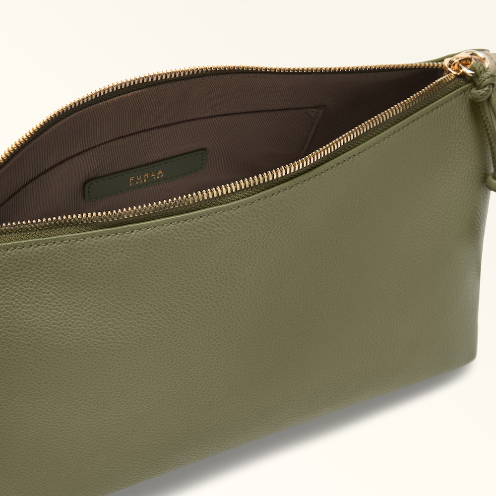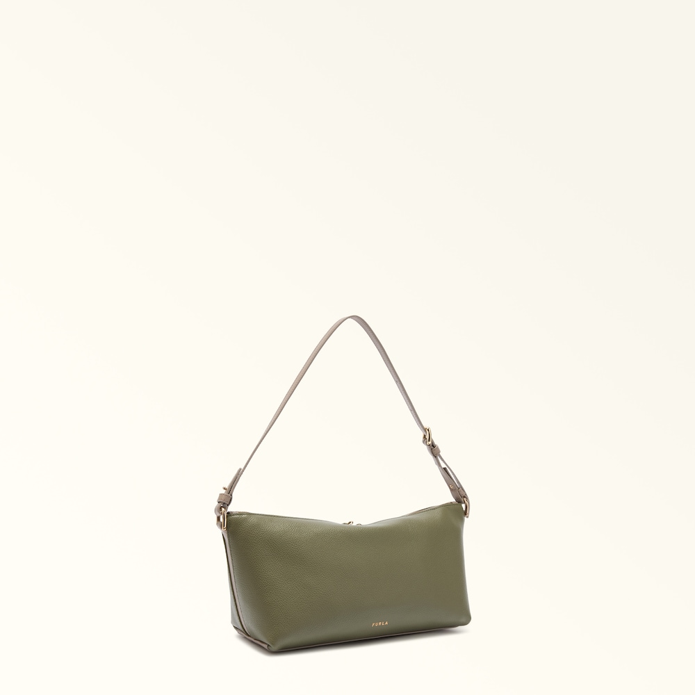 Furla Debby Schultertasche aus weichem Kalbsglattleder in avocado+linen
