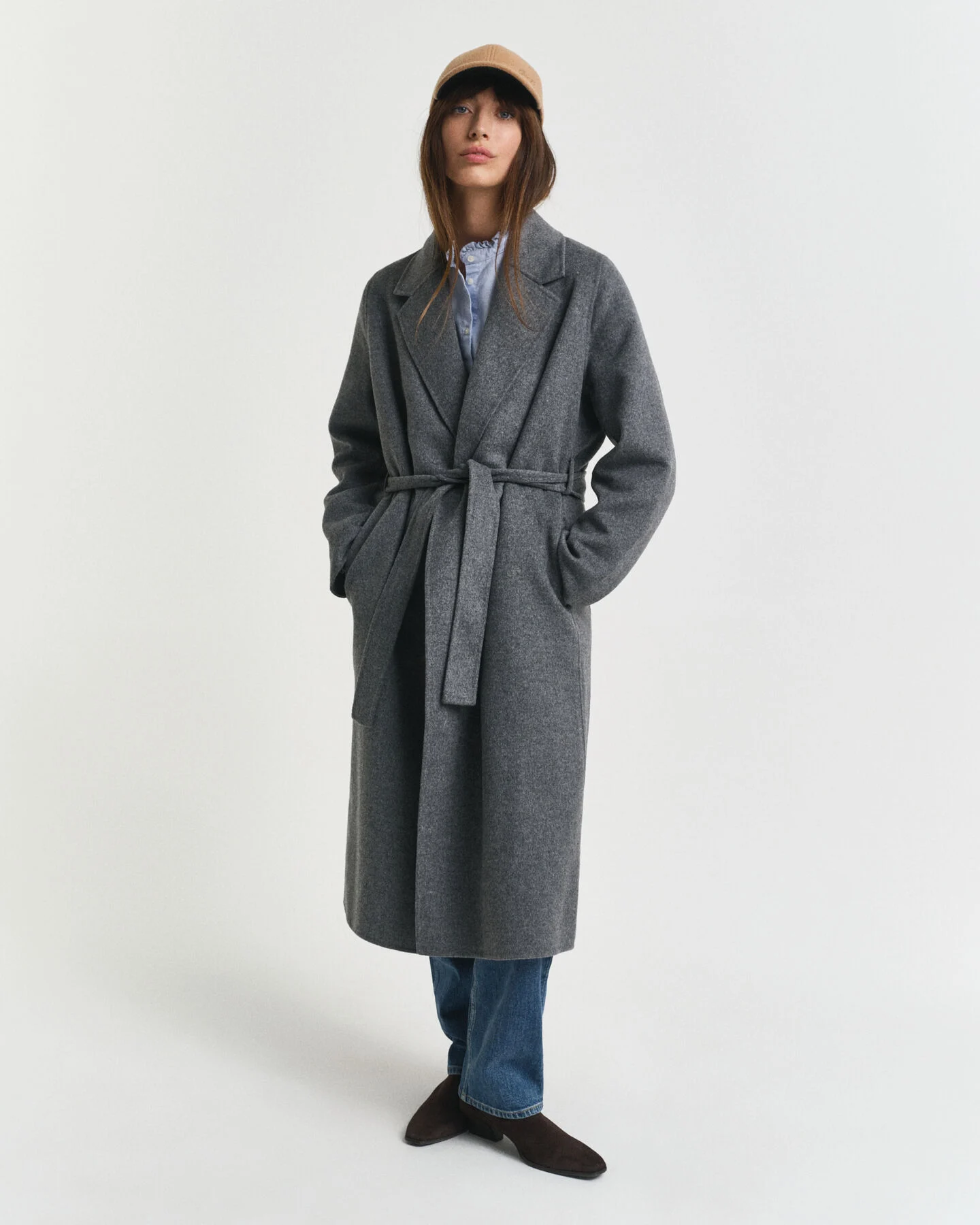 GANT Handgenähter Woll Mantel mit Gürtel in charcoal melange