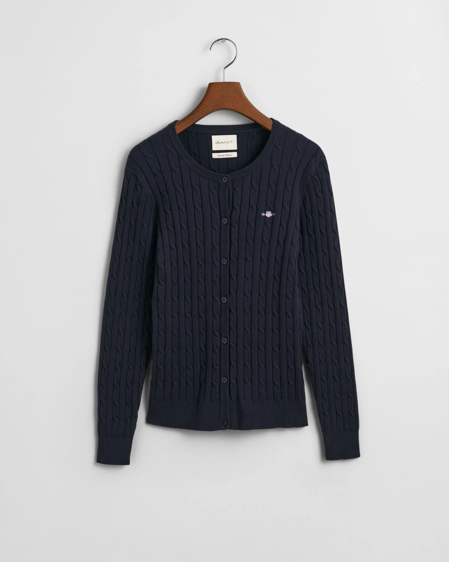 Produktinformationen "GANT Strickjacke aus Stretch-Baumwolle mit Zopfmuster in blau / CABLE CARDIGAN "