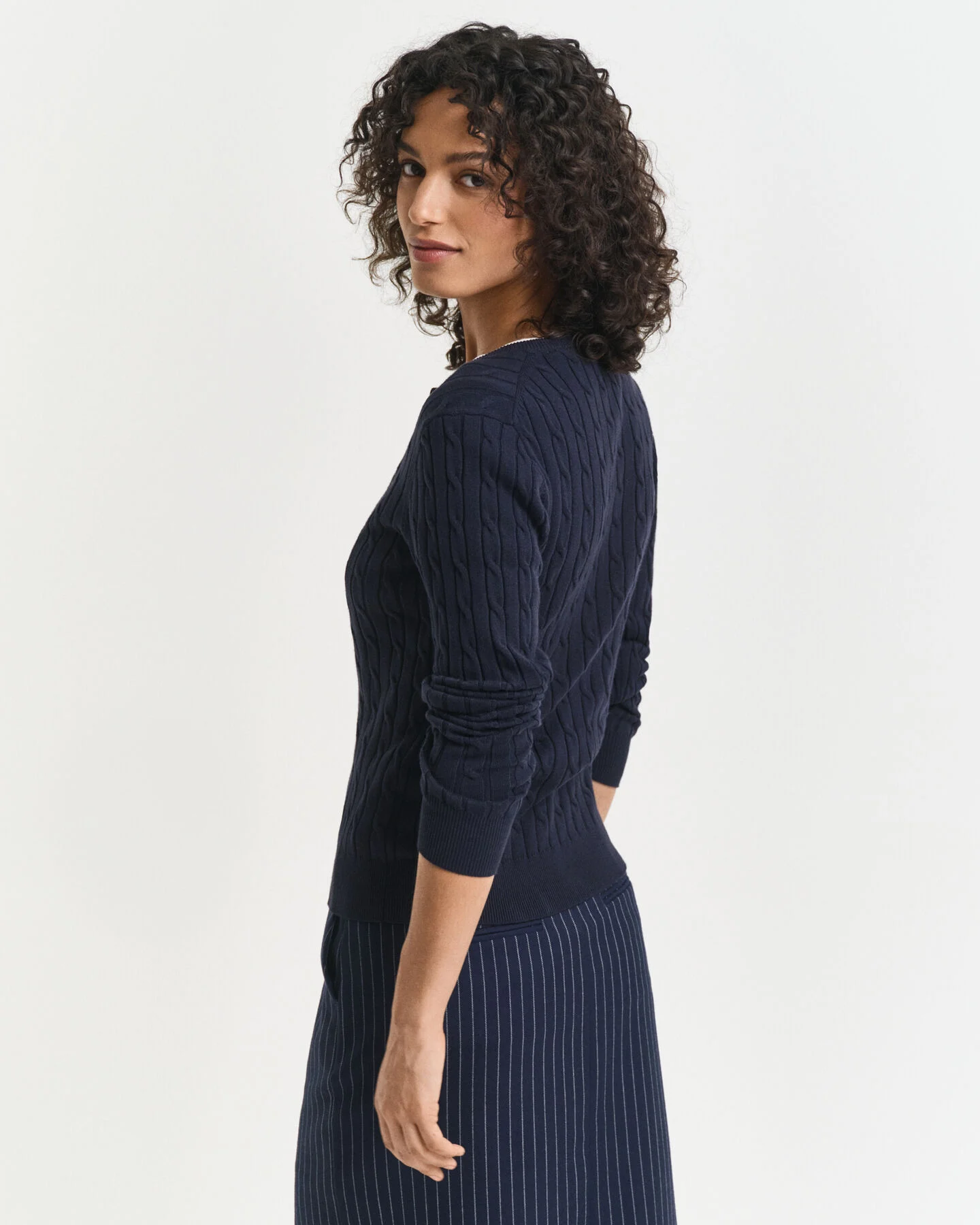 GANT Strickjacke aus Stretch-Baumwolle mit Zopfmuster in blau / CABLE CARDIGAN