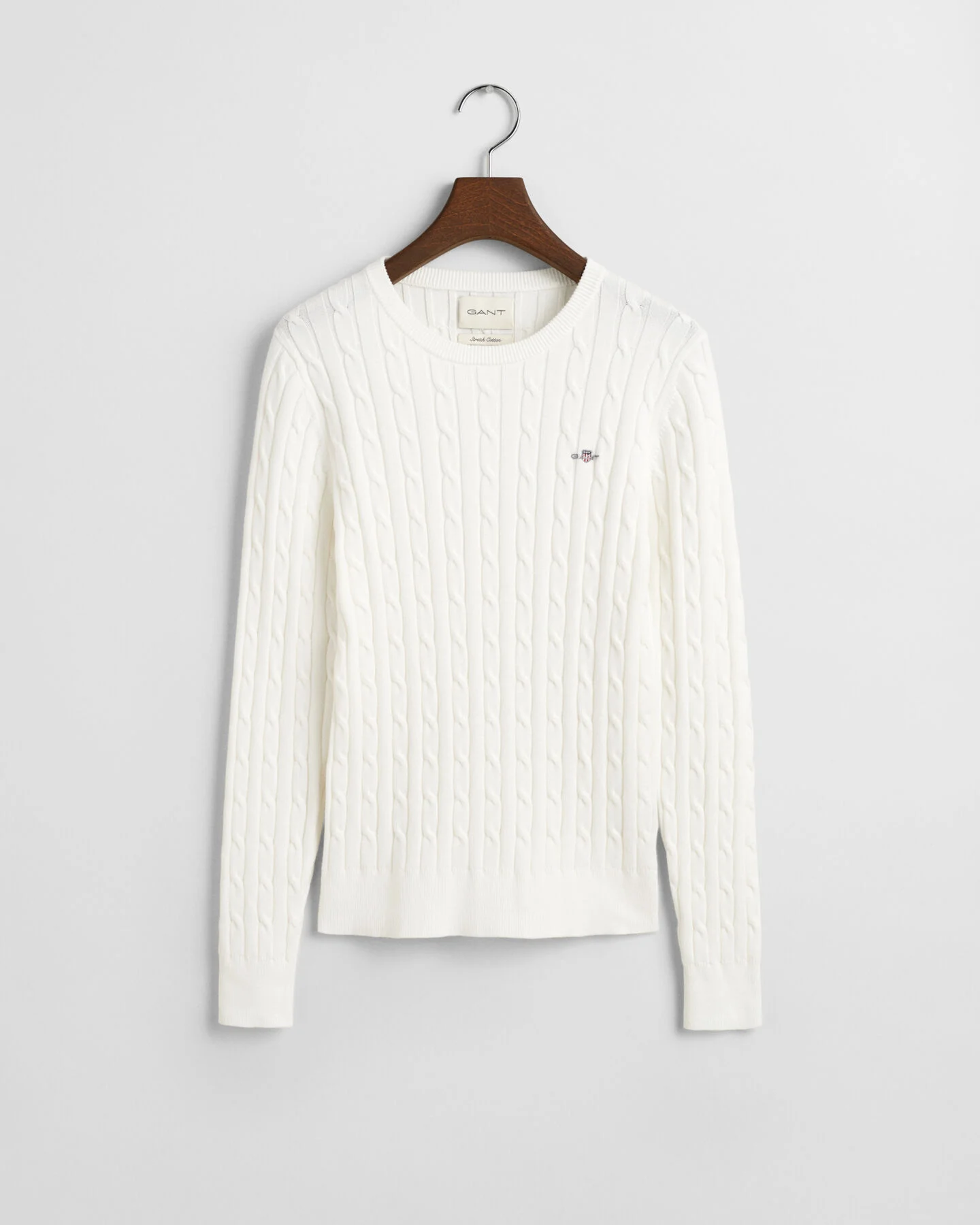 Gant Zopfstrick Rundhalspullover aus Stretch-Baumwolle in Eggshell
