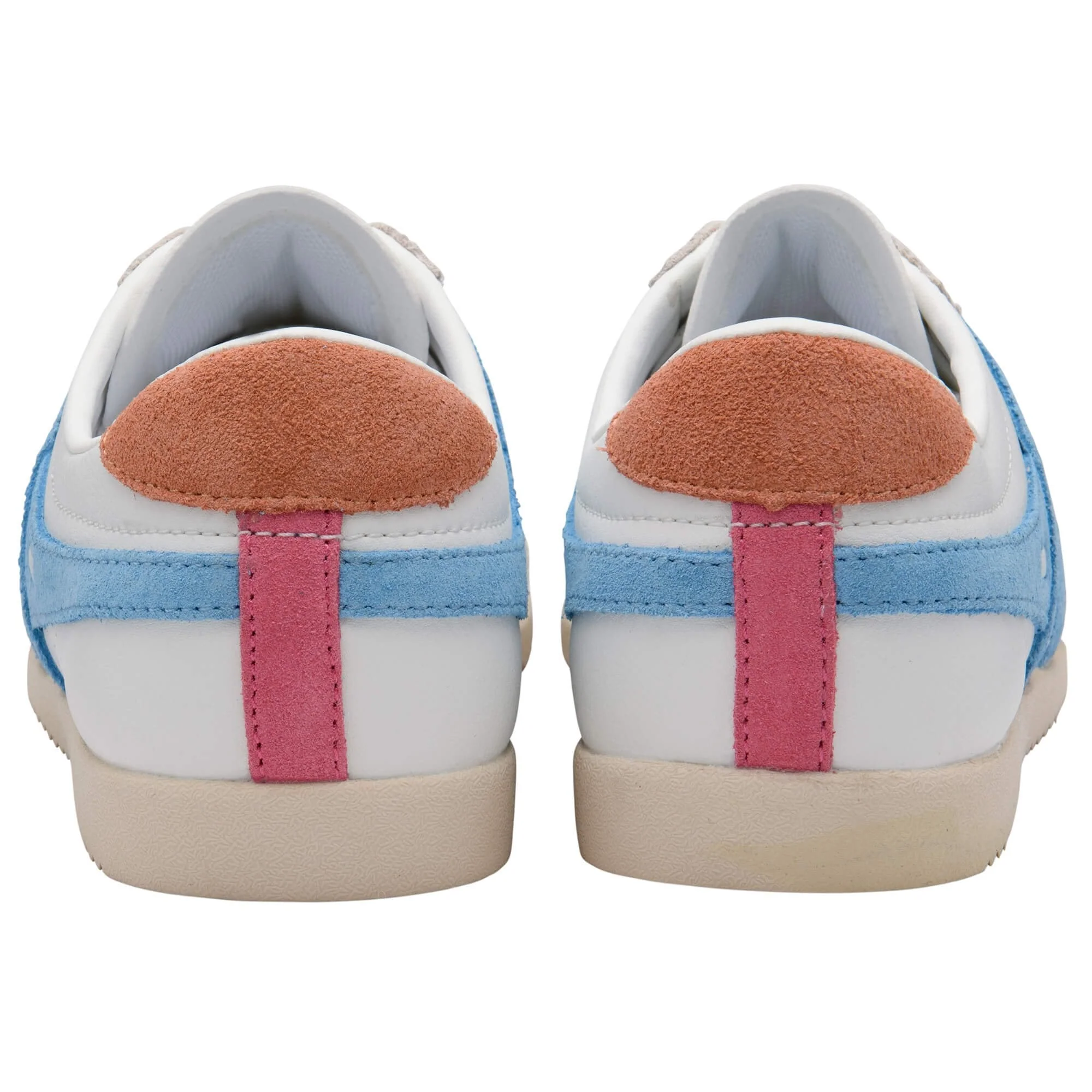Wenn es heute auf knallige Farben ankommt, ist der Gola Bullet Pure in Weiß mit hellblauen und terrakottafarbenen Akzenten genau das Richtige. Der Gola Bullet für Damen, der ursprünglich 1976 auf den Markt kam, ist ein Klassiker unter den Sneakern. Als einer der meistverkauften vielseitigen Trainingsschuhe seiner Zeit besticht der Bullet durch sein zeitloses Retro-Design, das auch nach über vier Jahrzehnten nichts von seiner Faszination verloren hat. Dieser flache Sneaker verleiht jedem Outfit eine stilvolle und feminine Note.