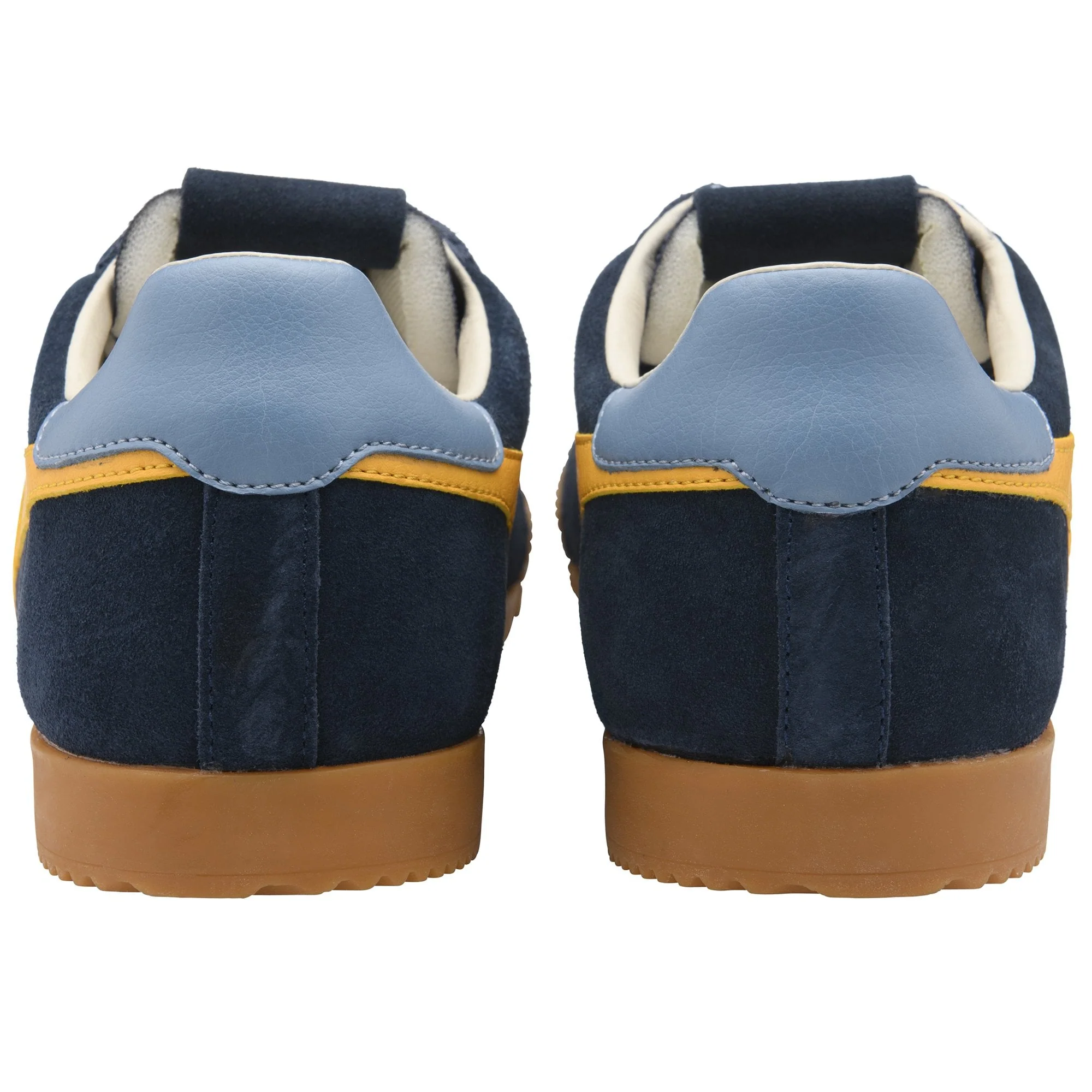 Die 1971 gegründete Marke Elan, die sich ihrer sportlichen Tradition bewusst ist, setzt mit ihren Herren-Sneakern neue Maßstäbe in Sachen Stil. Dieser Gola-Sneaker besticht durch seine klassische Gummisohle, die an die Schulzeit erinnert, während die zeitlosen Farbkombinationen ihm eine moderne Note mit einem Hauch Nostalgie verleihen. Hier abgebildet in Marineblau mit sonnengelbem Gola-Flügeldetail an der Seite.
