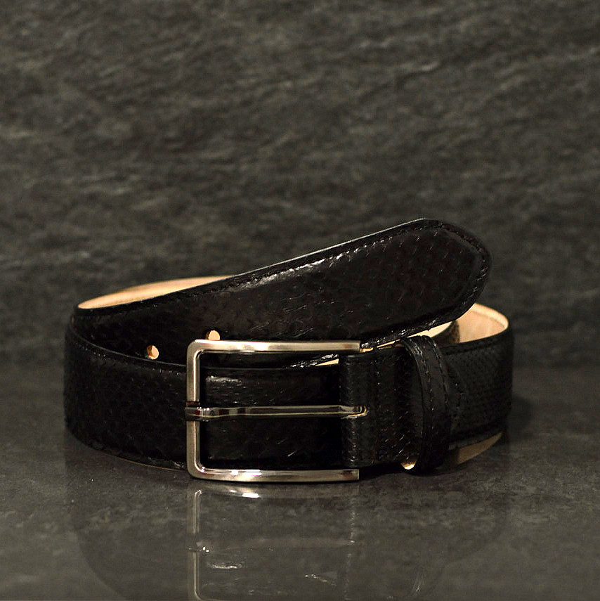 MGM Pythonleder Gürtel in schwarz Breite: 4,0cm Schlangenleder