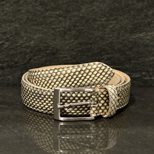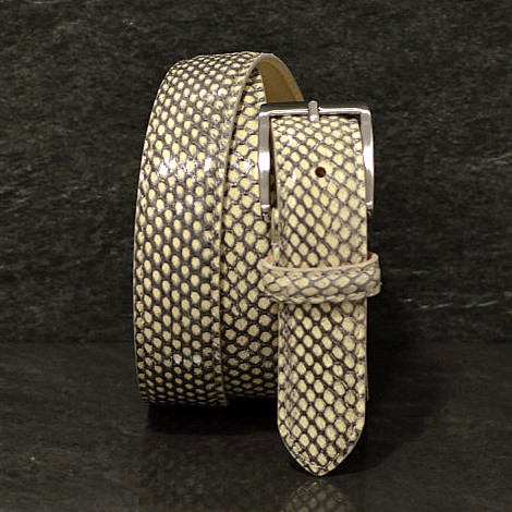 Der Schlangenleder Gürtel von MGM macht aus der einfachsten Jeans einen Hingucker! Neben dem hochwertigen und handgearbeiteten Gürtel mit einer Breite von 3,0 cm sticht diese Modell durch seine klare komplett gleichmäßige Maserung heraus. Mit seiner Gürtelschließe in einen matt Finish ist der Gürtel ein edler Begleiter fürs Büro wie auch in der Freizeit.