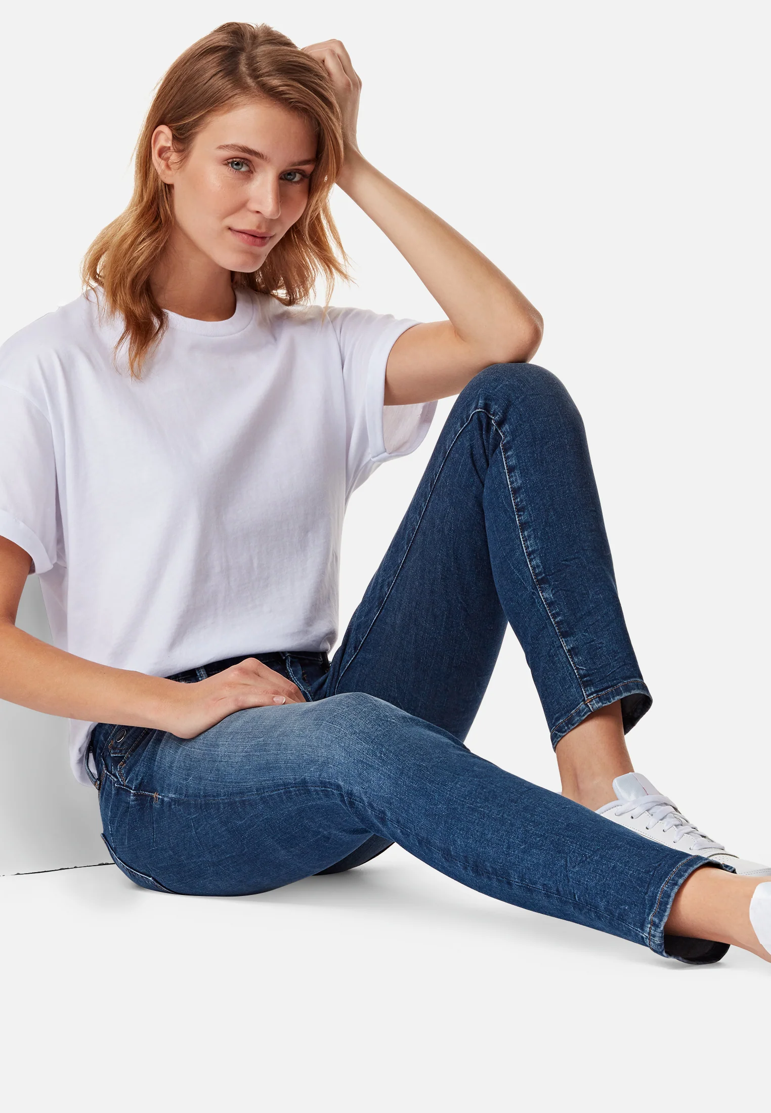 Die Lindy ist eine Skinny Jeans mit niedriger Leibhöhe. Bis zu den Knie verläuft die Lindy enganliegend, durch den Elasthananteil bietet sie einen bequemen Fit sowohl für die Freizeit als auch für die Arbeit