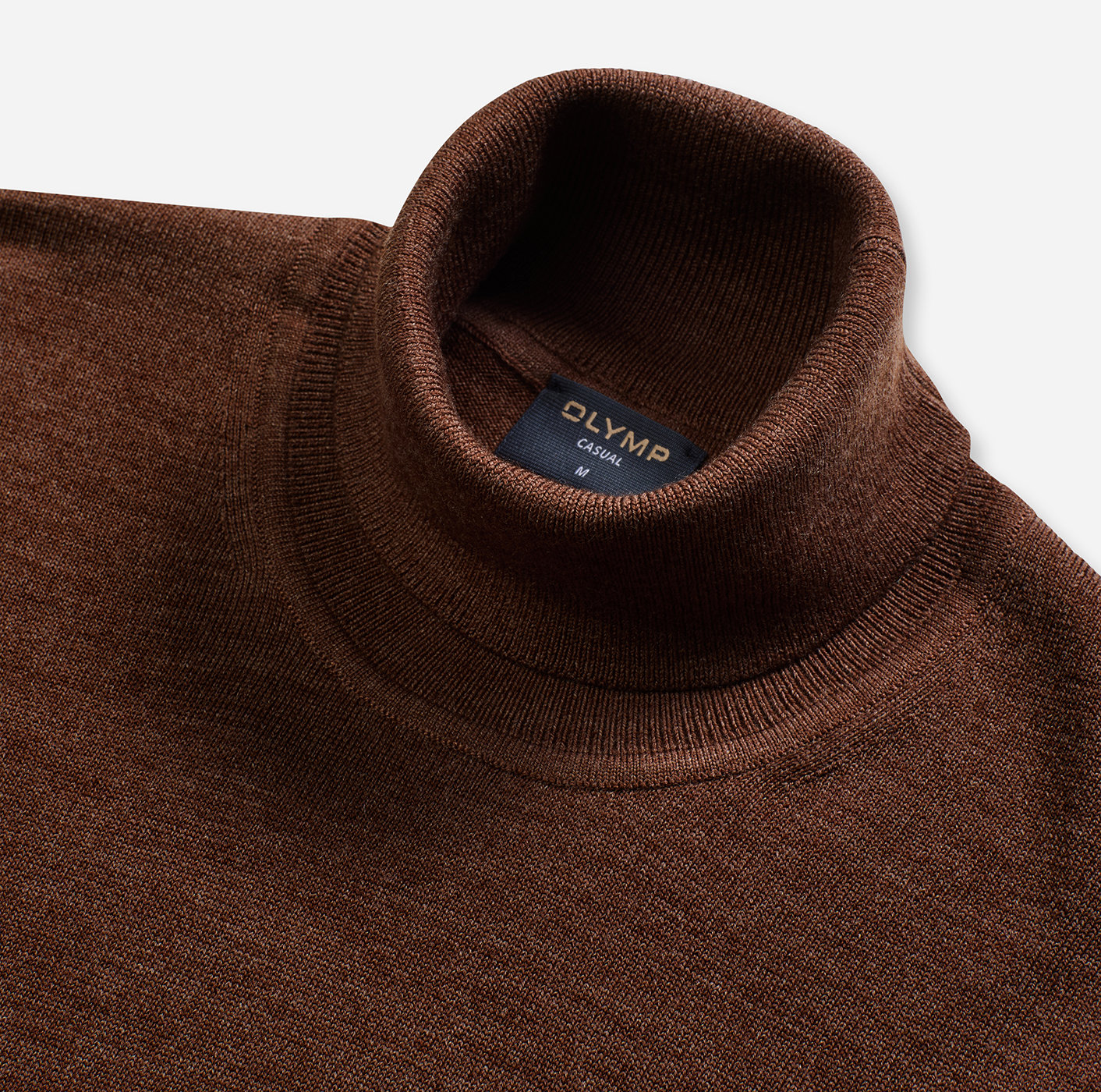 OLYMP Casual StrickRollkragen aus feiner Schurwolle in braun