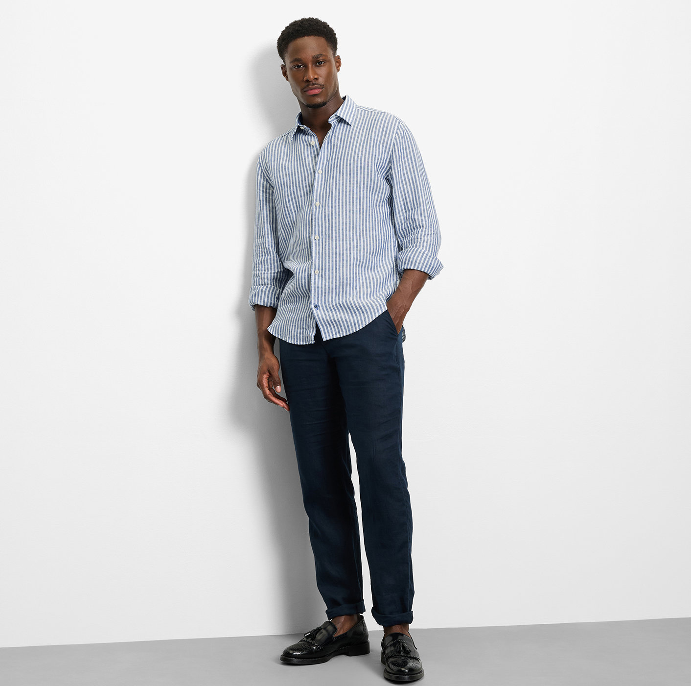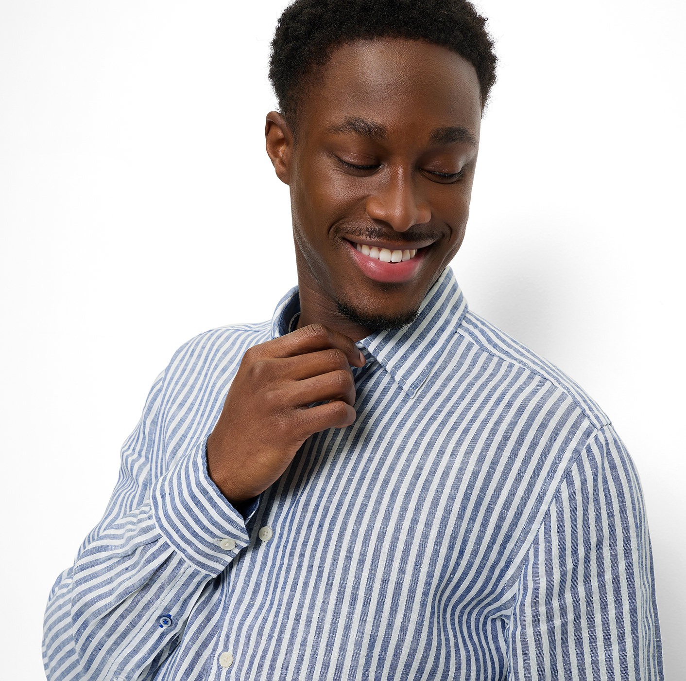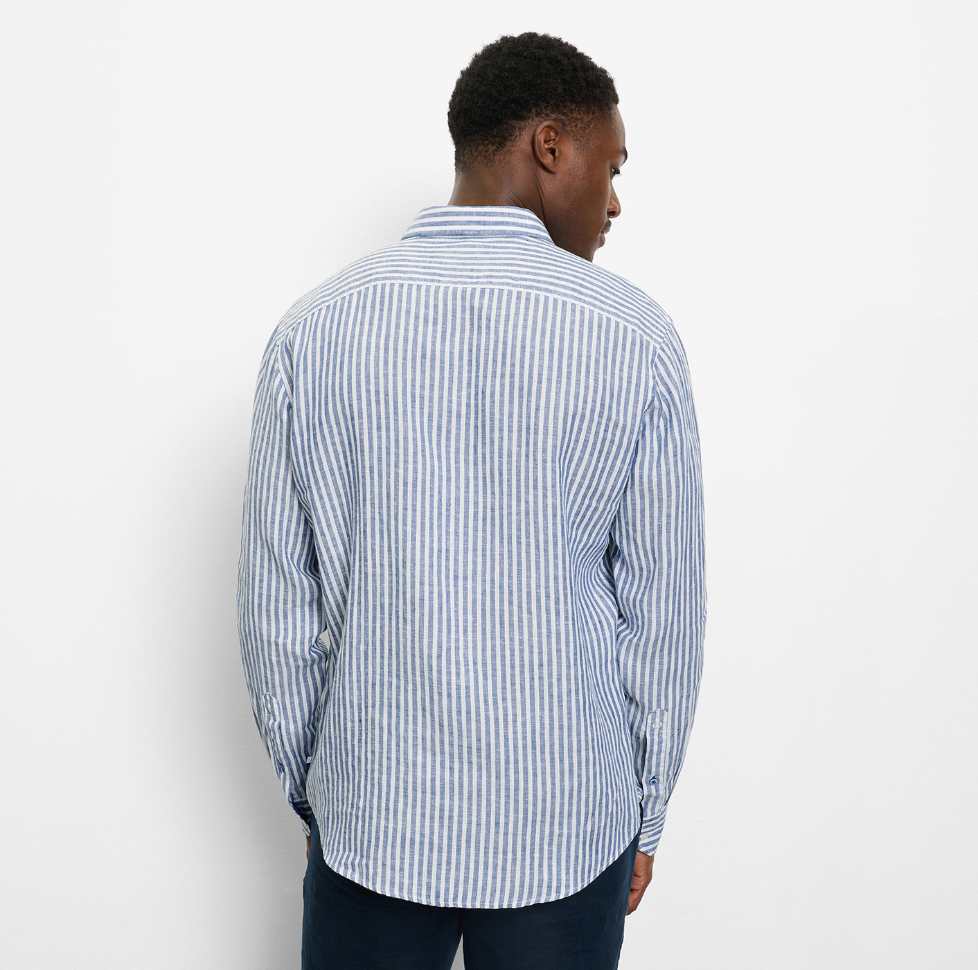 100% Leinen in glatter, leichter Optik. Dieses OLYMP Casual-Hemd zeigt royal-weiße Streifen und setzt auf klare Linien. Der Kent-Kragen wirkt gepflegt und unkompliziert. Ein Hemd, das durch Material, Muster und Detailarbeit überzeugt. Ein klarer Look für gepflegte Freizeit-Kombinationen - ideal, wenn ein leichtes Material und ein definiertes Muster gefragt sind.