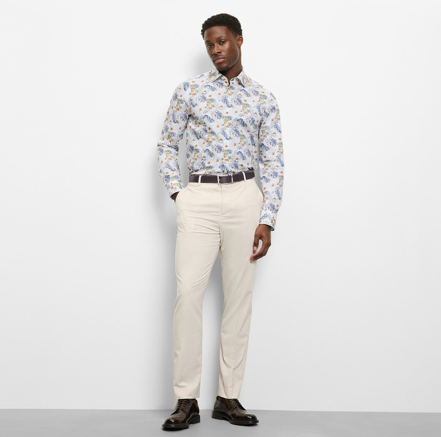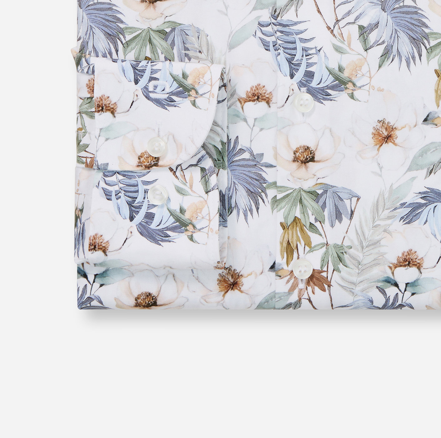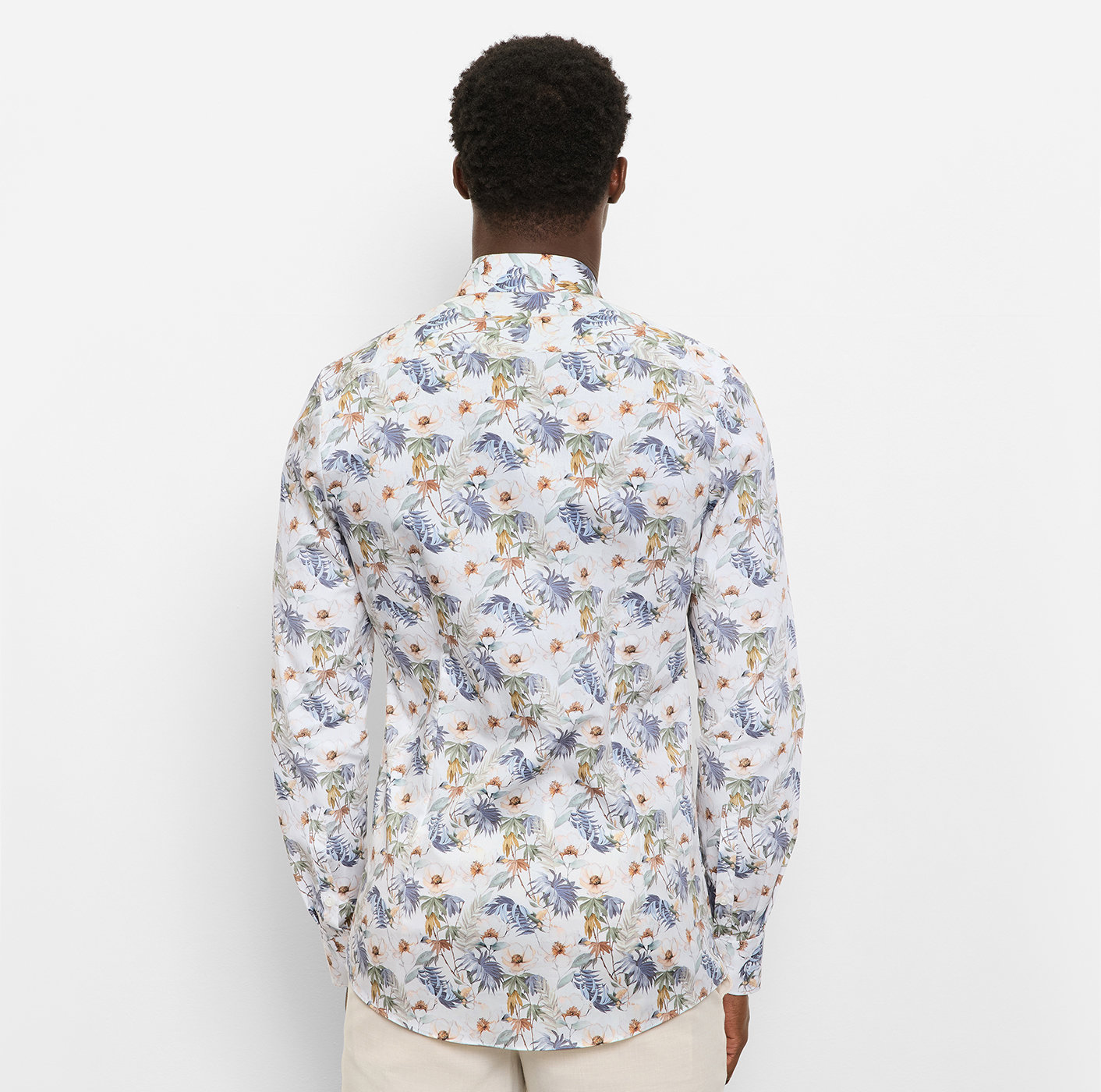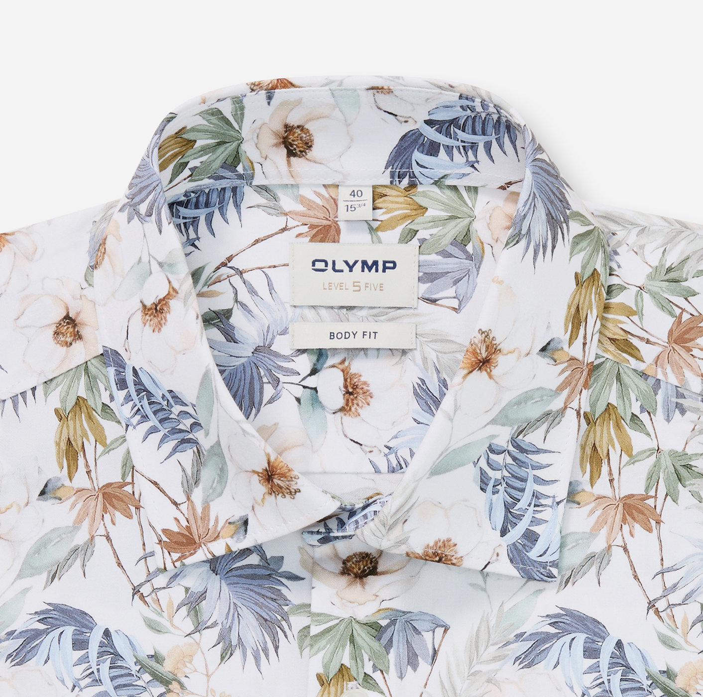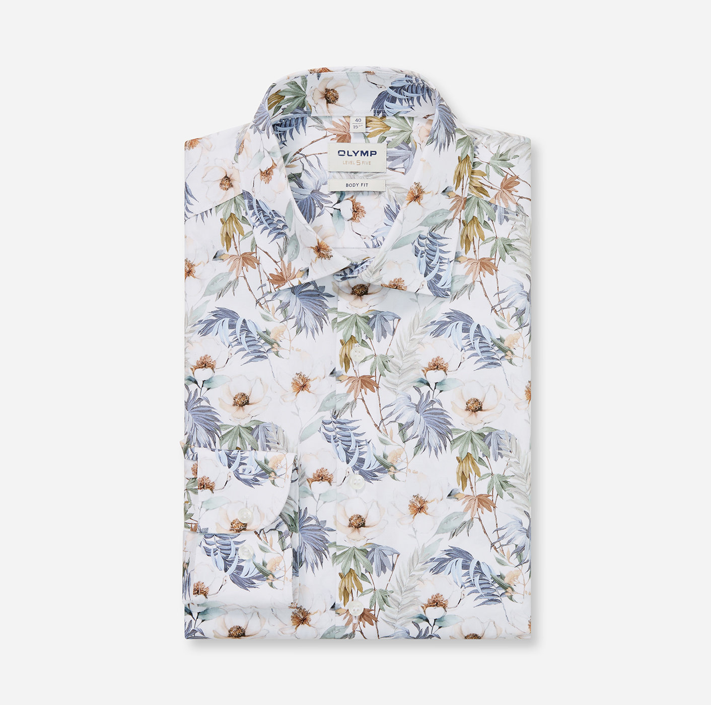 Olymp Level Five Hemd, body fit, Kent, Weiß mit Blumen Fullprint