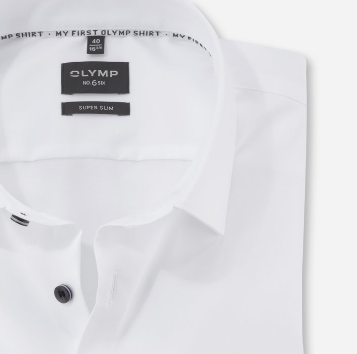 Dieses superschlanke OLYMP No. Six ist speziell für die jüngste Zielgruppe konzipiert. Ob zu privaten, festlichen oder beruflichen Anlässen – mit diesem klassischen Look gelingt der erste Eindruck perfekt. Designt in eleganter, glatter Comfort-Stretch-Qualität, akzentuiert durch dezente Details an Manschetten und Kragen. My first OLYMP Shirt in Weiß.