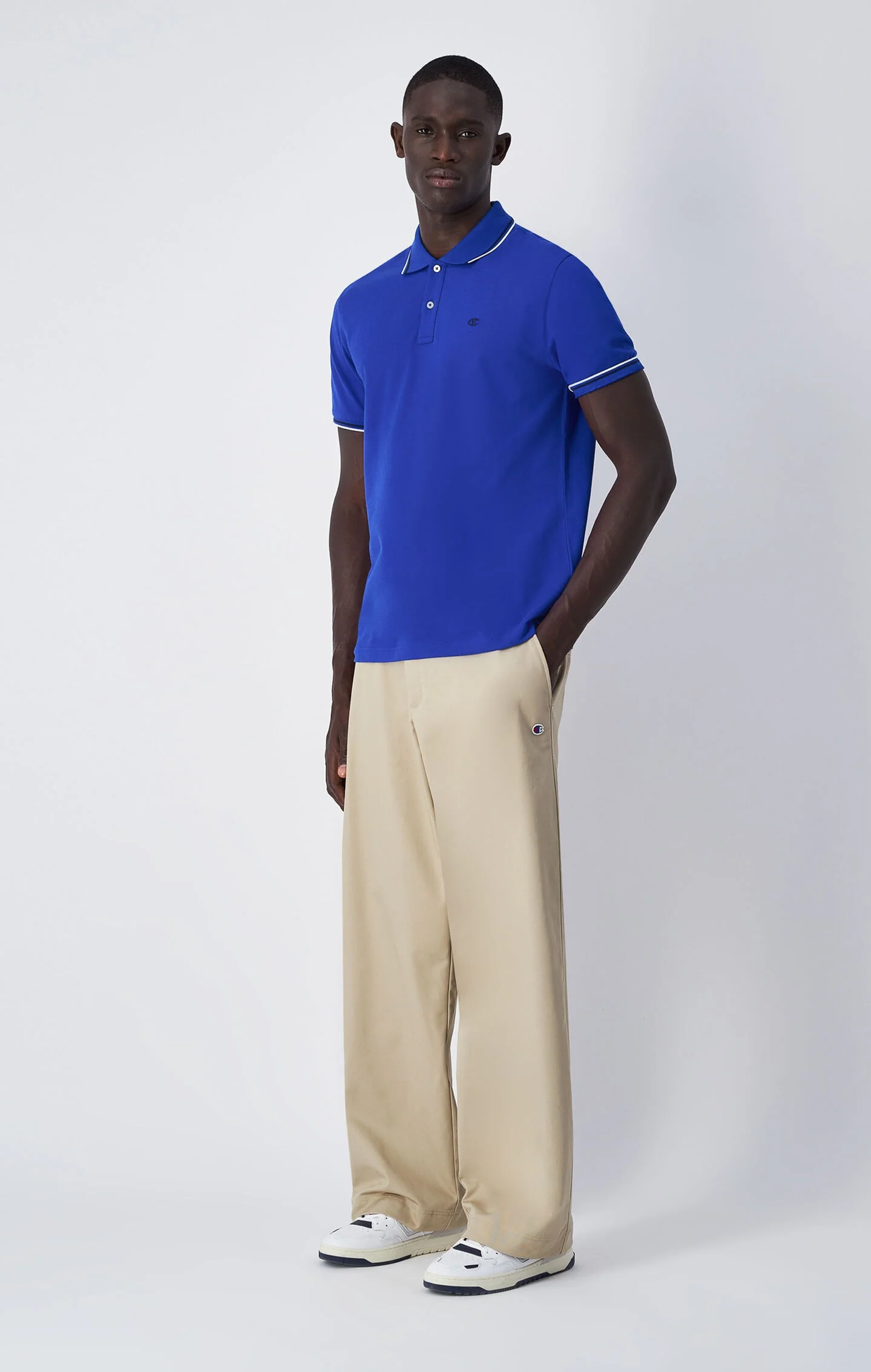 - Unser Model ist 186 cm groß und trägt dieses Poloshirt in Größe M.
