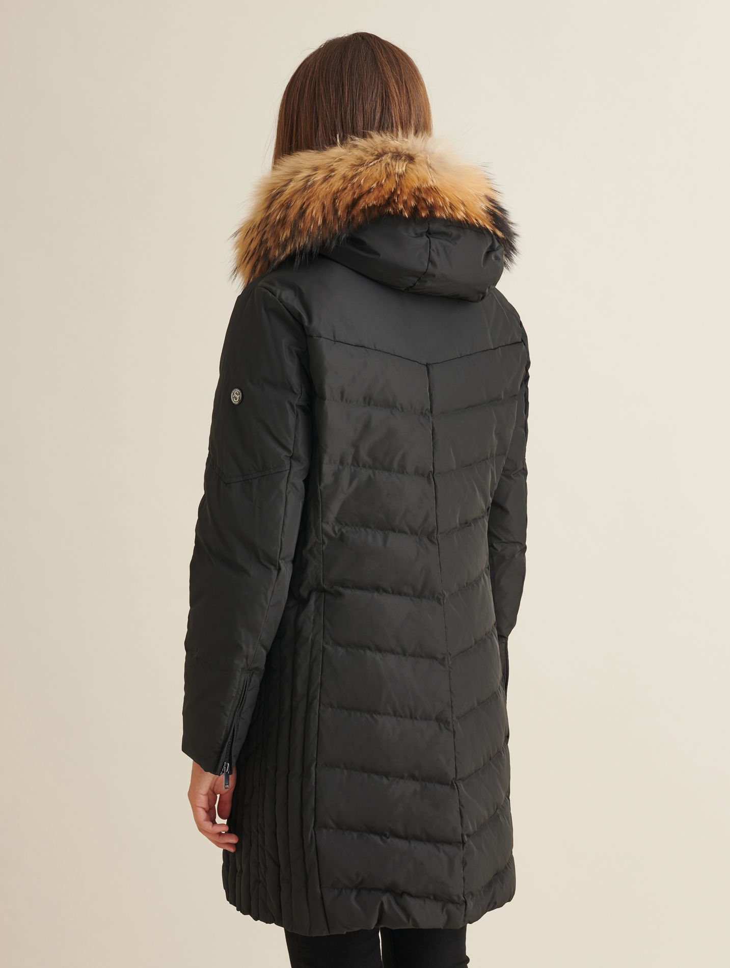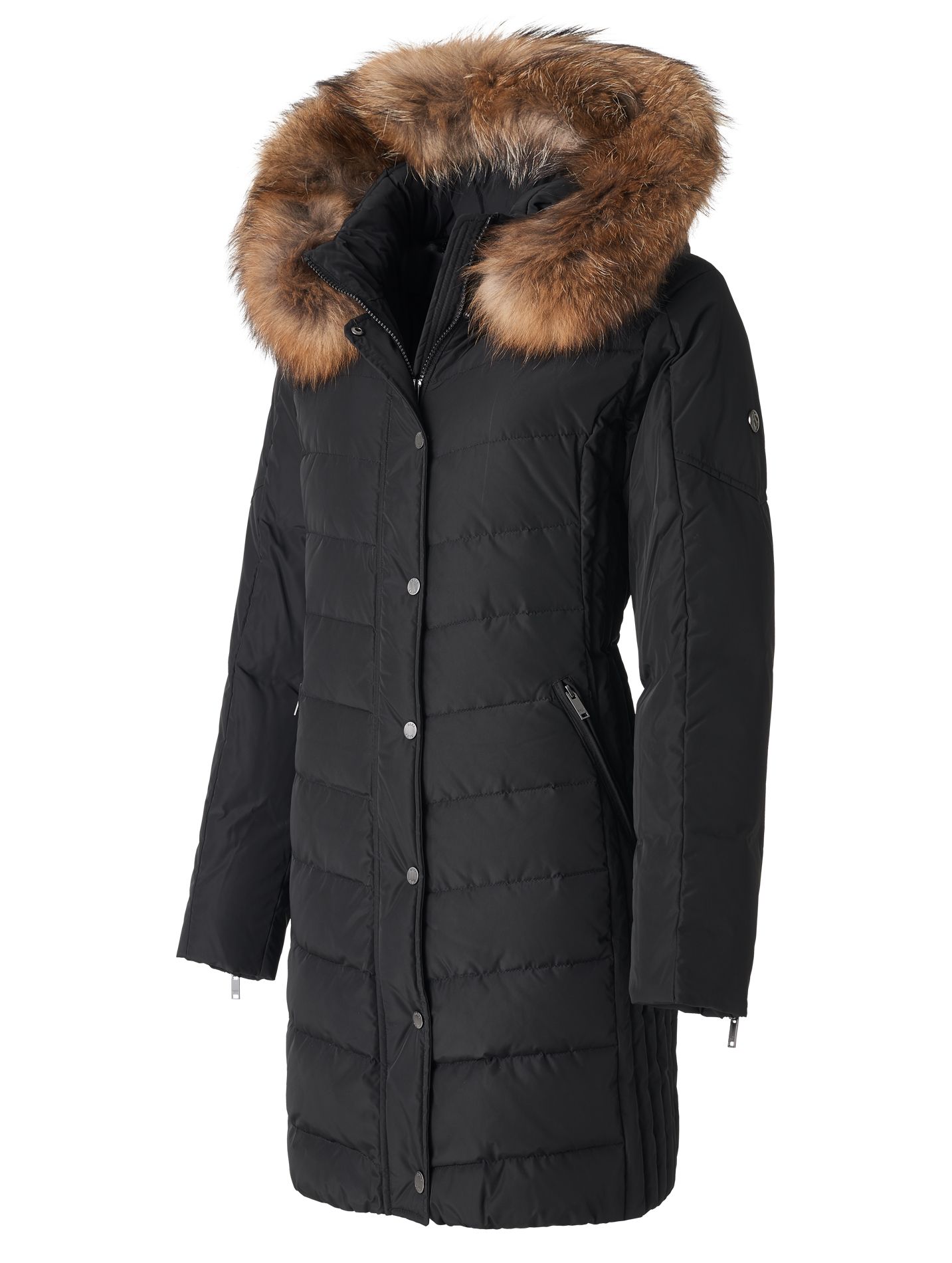 Produktinformationen "SAKI Sweden Daunenmantel mit Kapuze und Echtfellbesatz in schwarz "