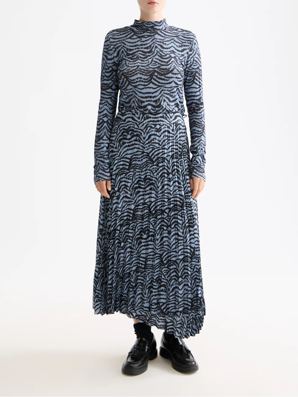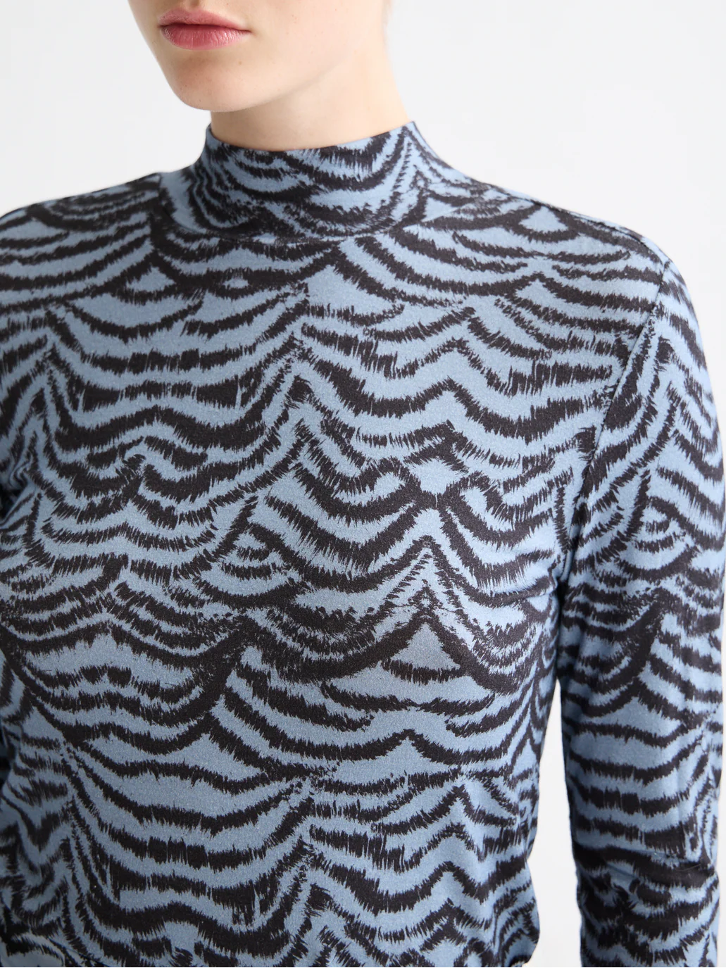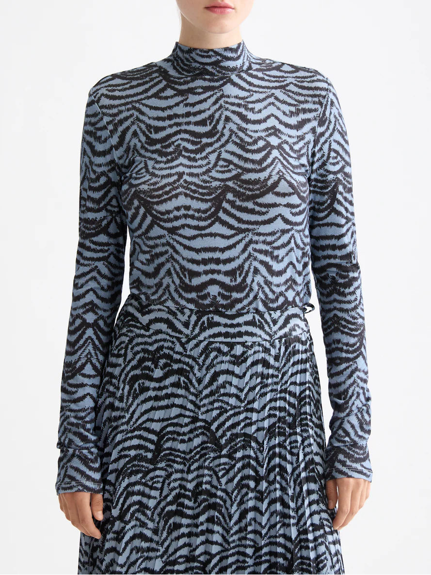 A soft long-sleeve t-shirt with a fitted mock neck, finished with an all-over print for standout layering.
