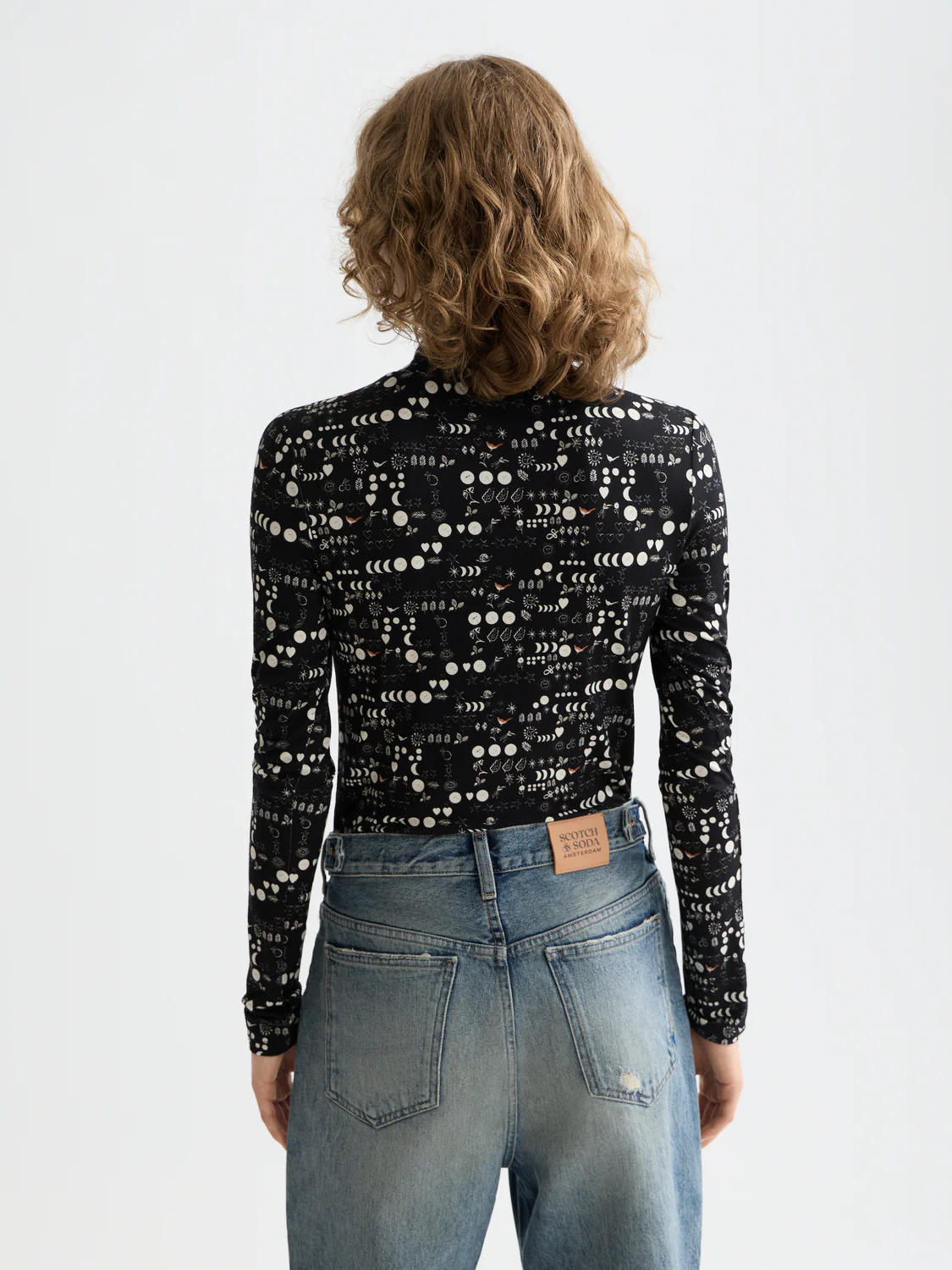 Scotch&Soda All over printed mock neck long sleeve T-shirt in schwarz