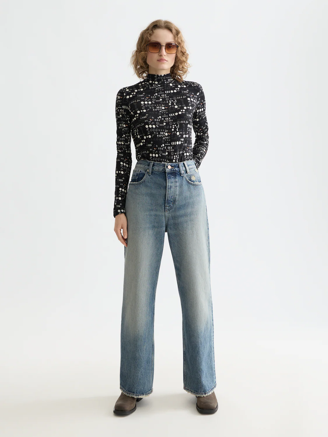 A soft long-sleeve t-shirt with a fitted mock neck, finished with an all-over print for standout layering.