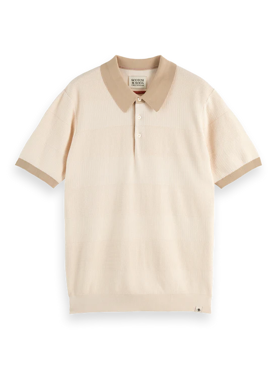 Scotch&Soda MEN Knitted striped polo in Eggnog