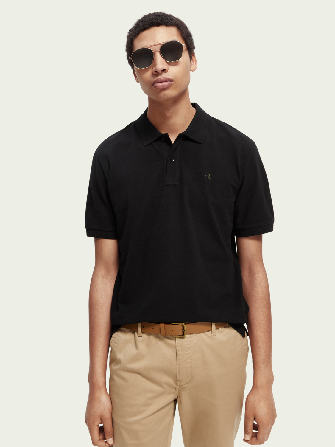Scotch&Soda Organic cotton pique Polo in schwarz mit eingesticketem Logo