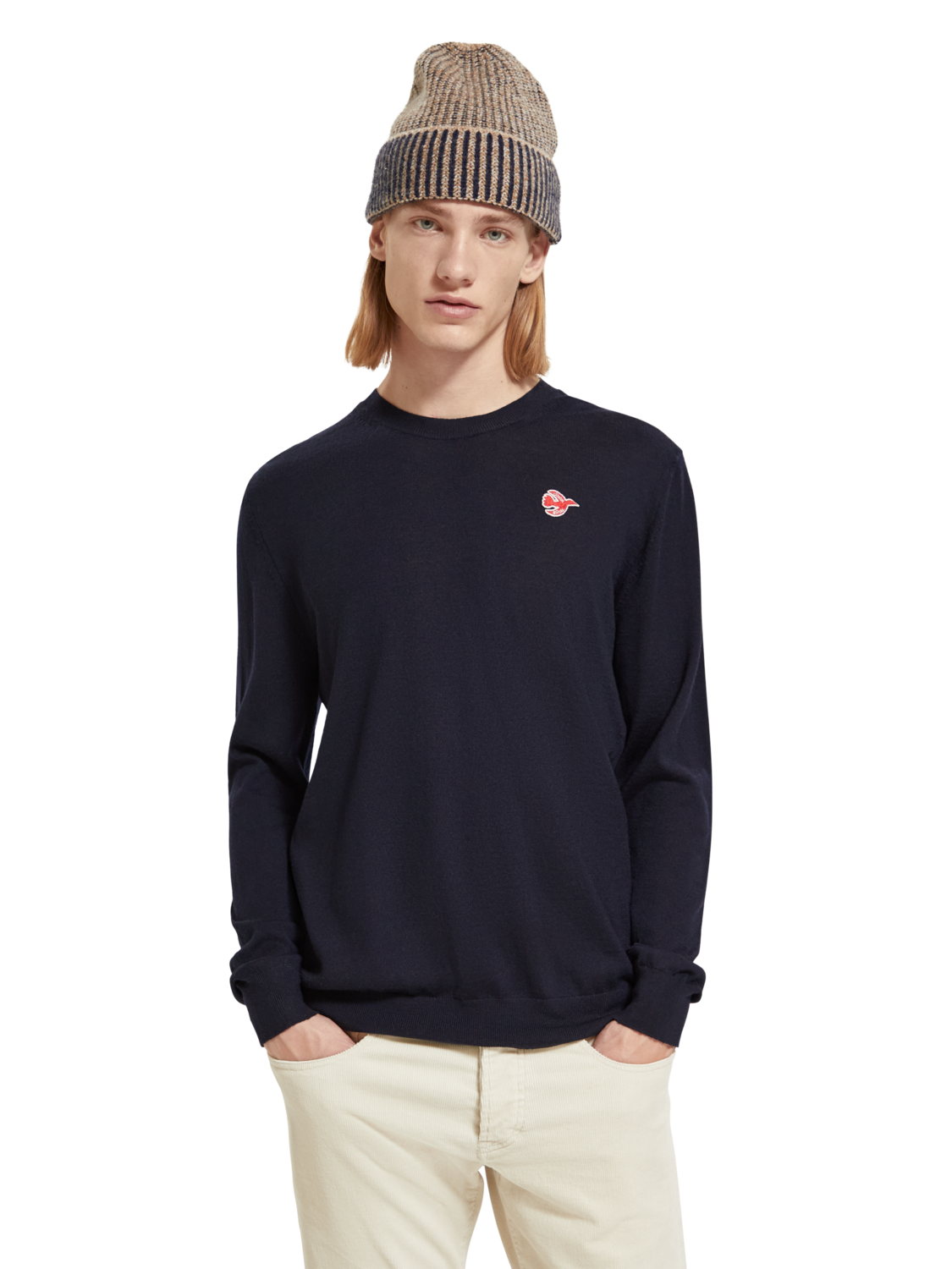 Produktinformationen "Scotch&Soda Regular fit free spirit bird Pullover aus Merino Wolle in grau"