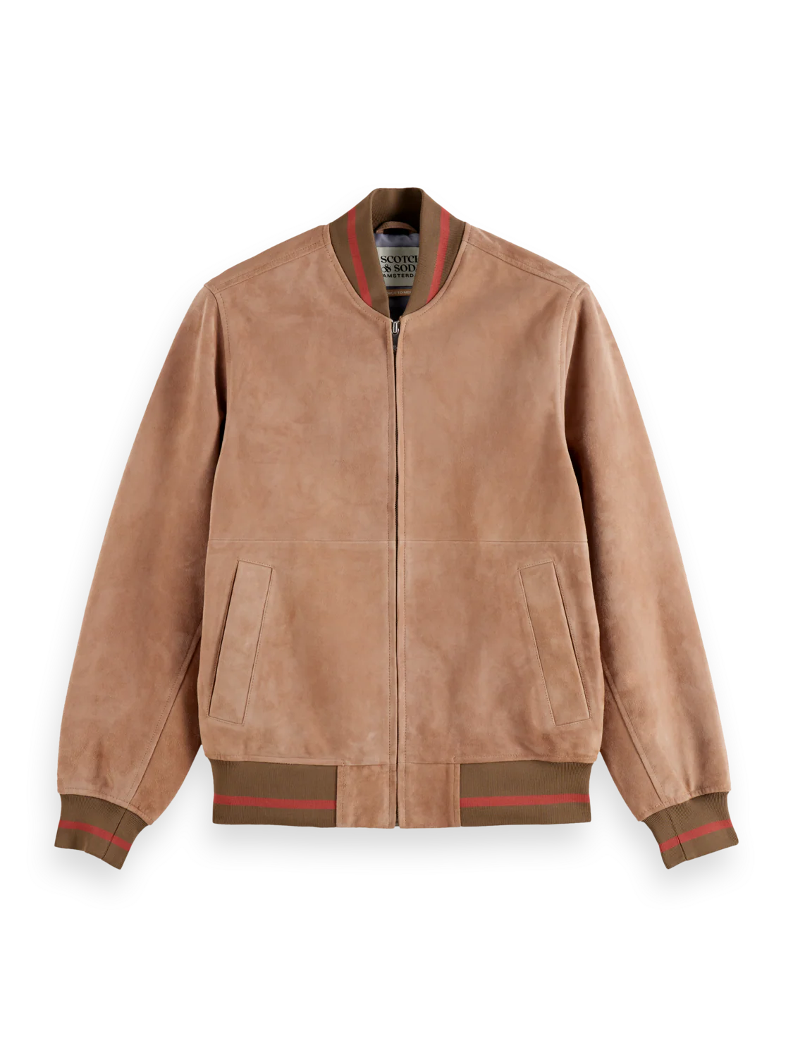 Produktinformationen "Scotch & Soda Suede Bomber Jacket / Lederjacke in Soft Camel"